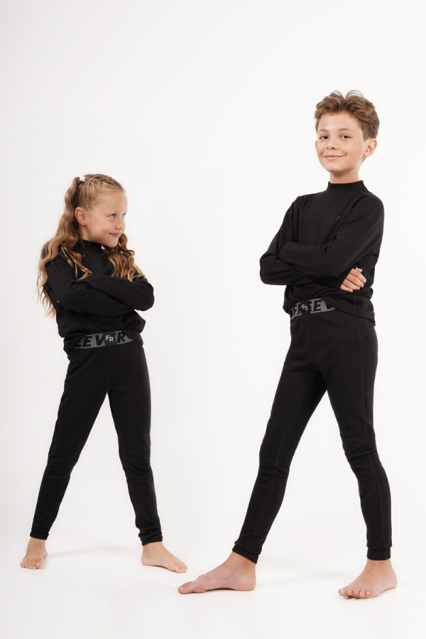 Дитяча термобілизна Freever NF 8120 чорна — надійна основа для тепла і комфорту в холодну пору року. Комплект складається з лонгсліва і термоштанів з широкою еластичною гумкою. Виготовлений з м’якого, еластичного матеріалу з плоскими швами, що виключає натирання і забезпечує свободу рухів.
