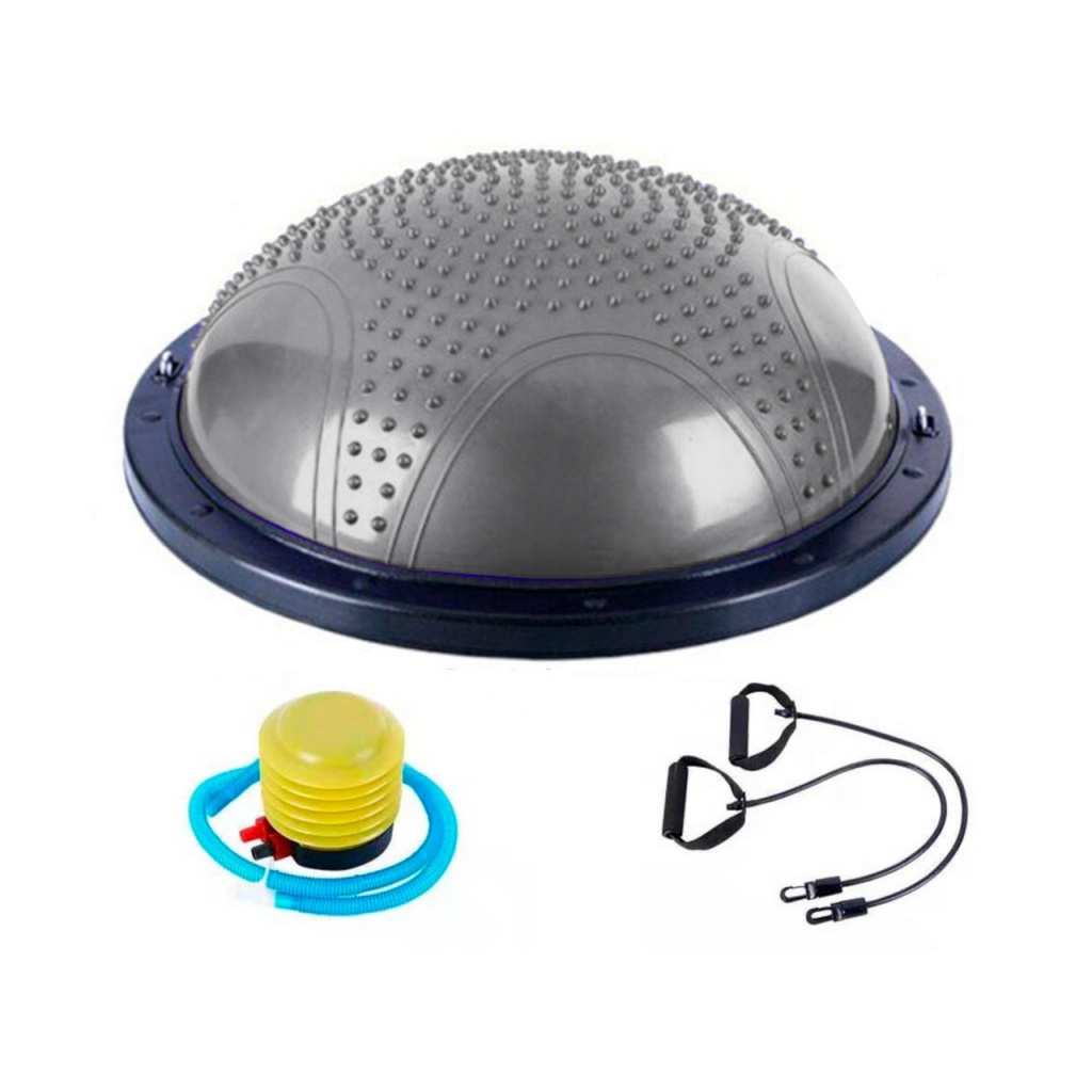 Балансувальна півсфера BOSU бренду SNS уявляє собою м’яку півкулю, що закріплена на міцній круглій основі, яка оснащена двома еспандерами з обох боків. Міцний матеріал півсфери витримує навантаження до 150 кг та дозволяє тренуватися як дорослим, так і підліткам. Крім еспандерів, в комплекті є насос та заглушка, що дозволяє самостійно регулювати тиск повітря і, відповідно, пружність півкулі. Заняття з використання балансувальної півсфери – простий спосіб тренування координації, контролю балансу, а також опрацювання різних груп м’язів.