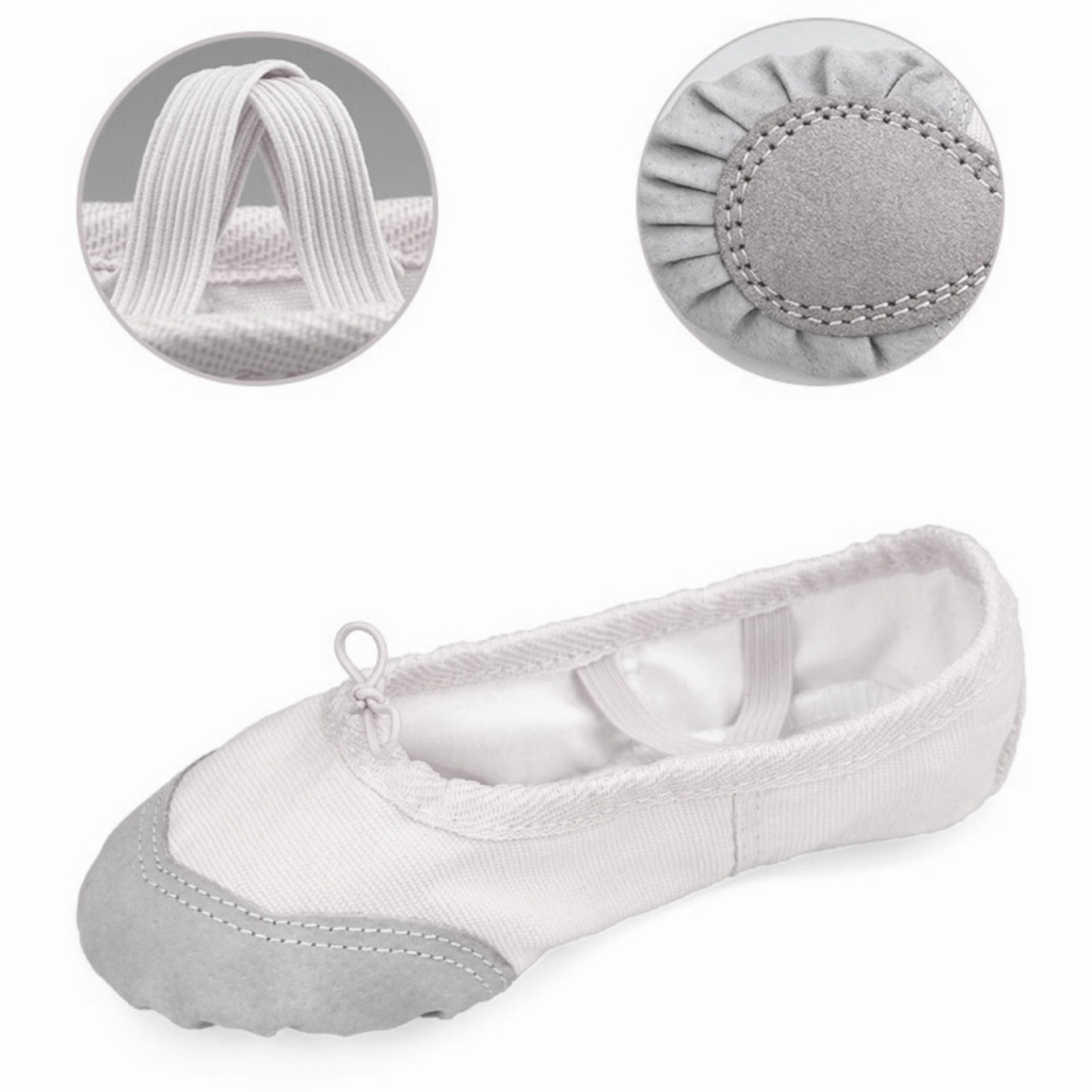 Балетки – універсальне взуття для спортивних тренувань та танцювальних занять. Балетки виконані з бавовни та замші і не натирають ногу. Під носком та п’ятою – спеціальні вшиті вкладки-подушечки, які знижують навантаження на стопу та пальці ніг. Фіксація балетки на нозі відбувається за допомогою подвійної гумки та шнурівки-утяжки. Підвищений комфорт під час занять досягається за рахунок тонкої гнучкої підошви, яка підтримує стопу в природному положенні.