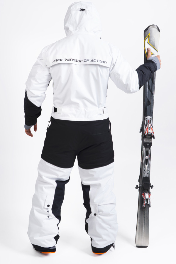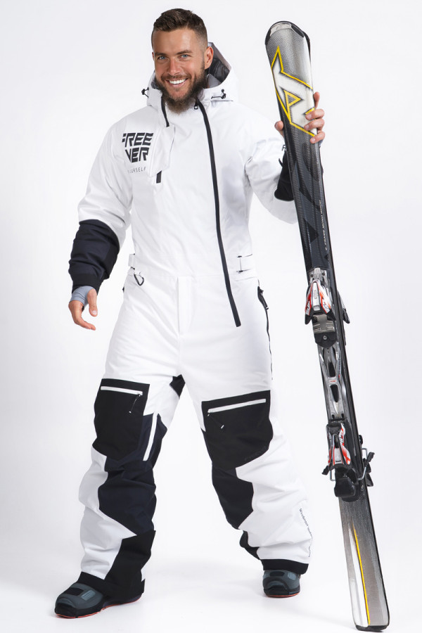 Комбінезон оснащений регульованим поясом, водонепроникними блискавками, вентиляцією, проклеєними швами та внутрішніми манжетами, забезпечуючи комфорт та повний захист від вологи та вітру. Білий колір із контрастними чорними вставками підкреслює спортивний стиль та сучасний дизайн Freever.