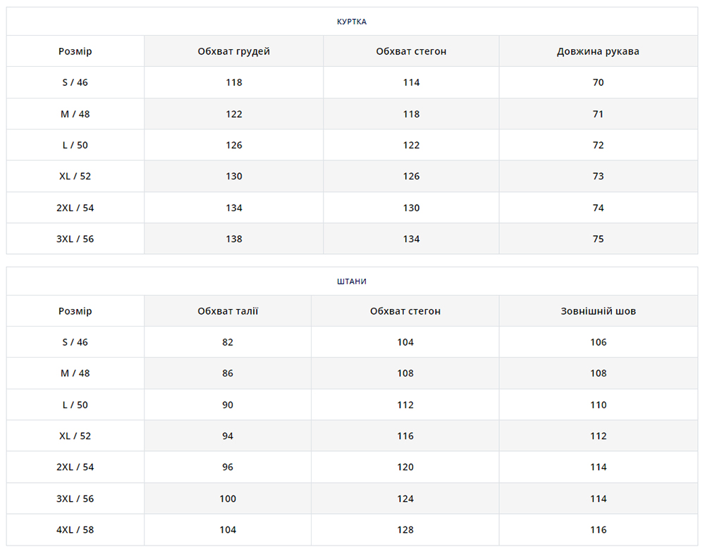 | Розмір | S, M, L, XL, XXL, 3XL |