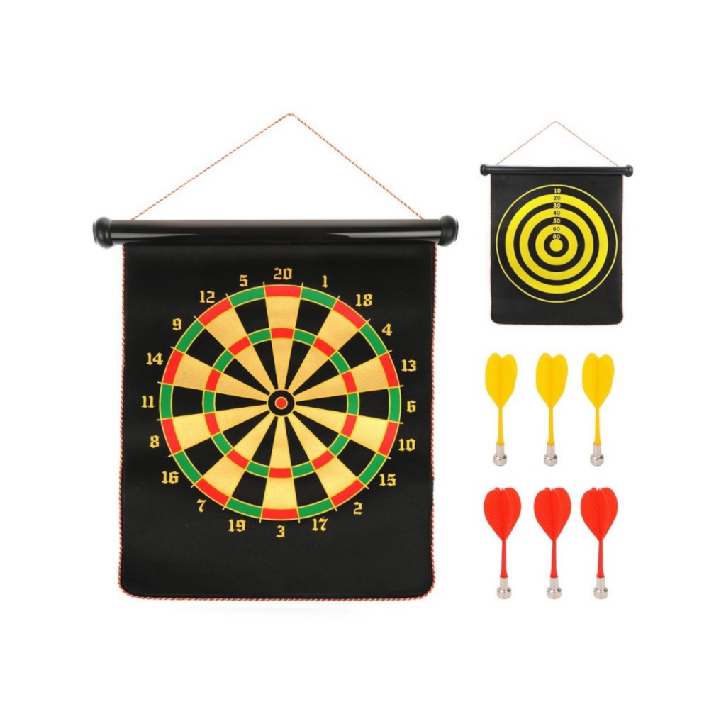 Дартс магнітний м’який двосторонній – гра для дорослих і дітей. В комплект гри входять шість дротиків та двостороннє полотно з мішенню для традиційного дартсу з одного боку та гри в яблучко з іншого боку. Вибирайте ту чи іншу гру, вішайте мішень у будь-якому зручному місці та починайте гру.