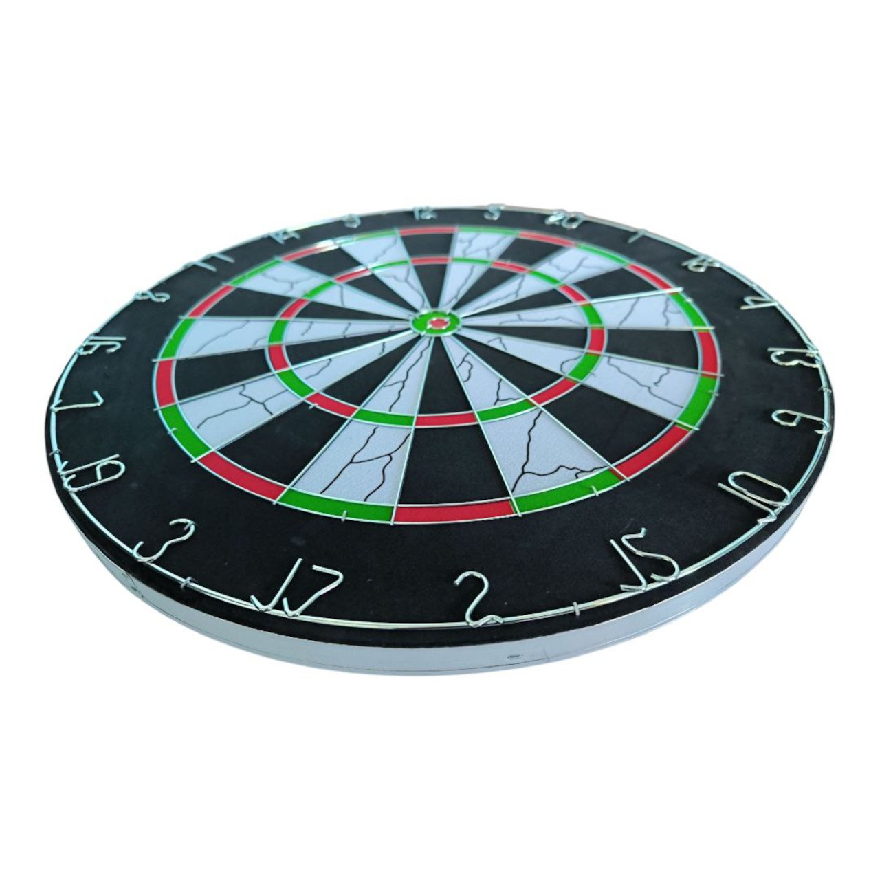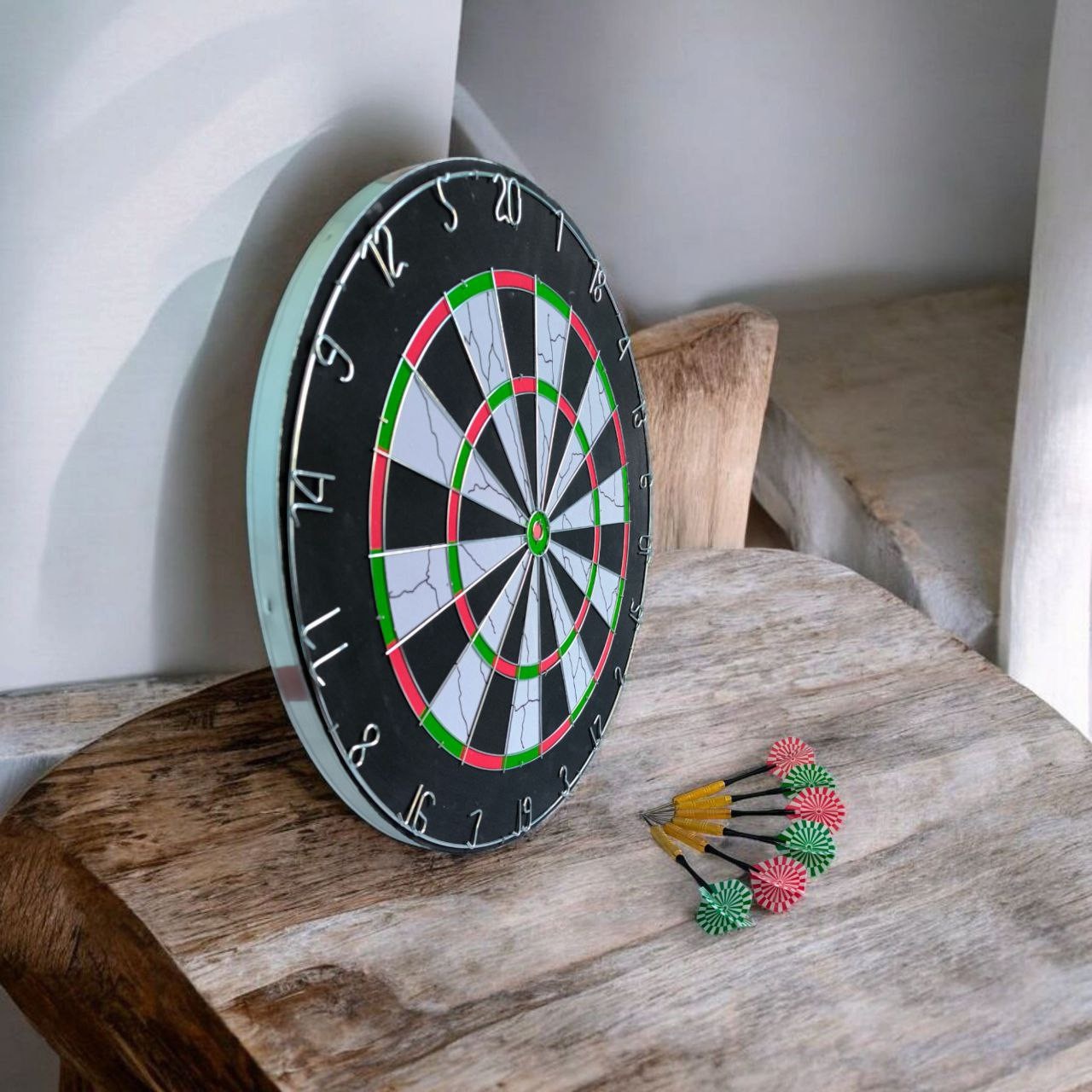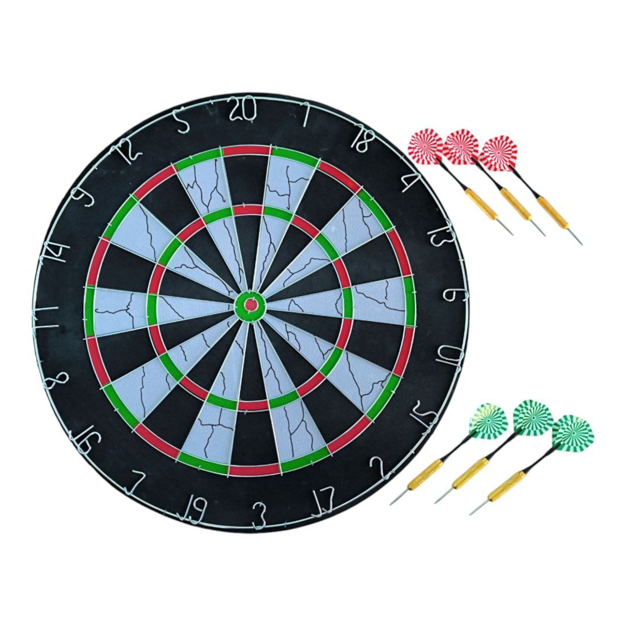Набір для гри в дартс FLOCKED SERIES 18М+ складається з мішені 18 дюймів та 6 дротиків з червоним та зеленим оперенням. Мішень виготовлена з пресованого картону та покрита спеціальним матеріалом флок, який створює бархатисту поверхню. Флокове покриття допомагає продовжити термін служби мішені, запобігаючи швидкому зносу. Такі мішені часто є доступнішими за ціною, ніж мішені із сизалю. Цифри виготовлені із металевого дроту. Цим же матеріалом розділені сектори мішені. Цей набір ідеально підходить для розважальної гри в дартс у колі друзів.