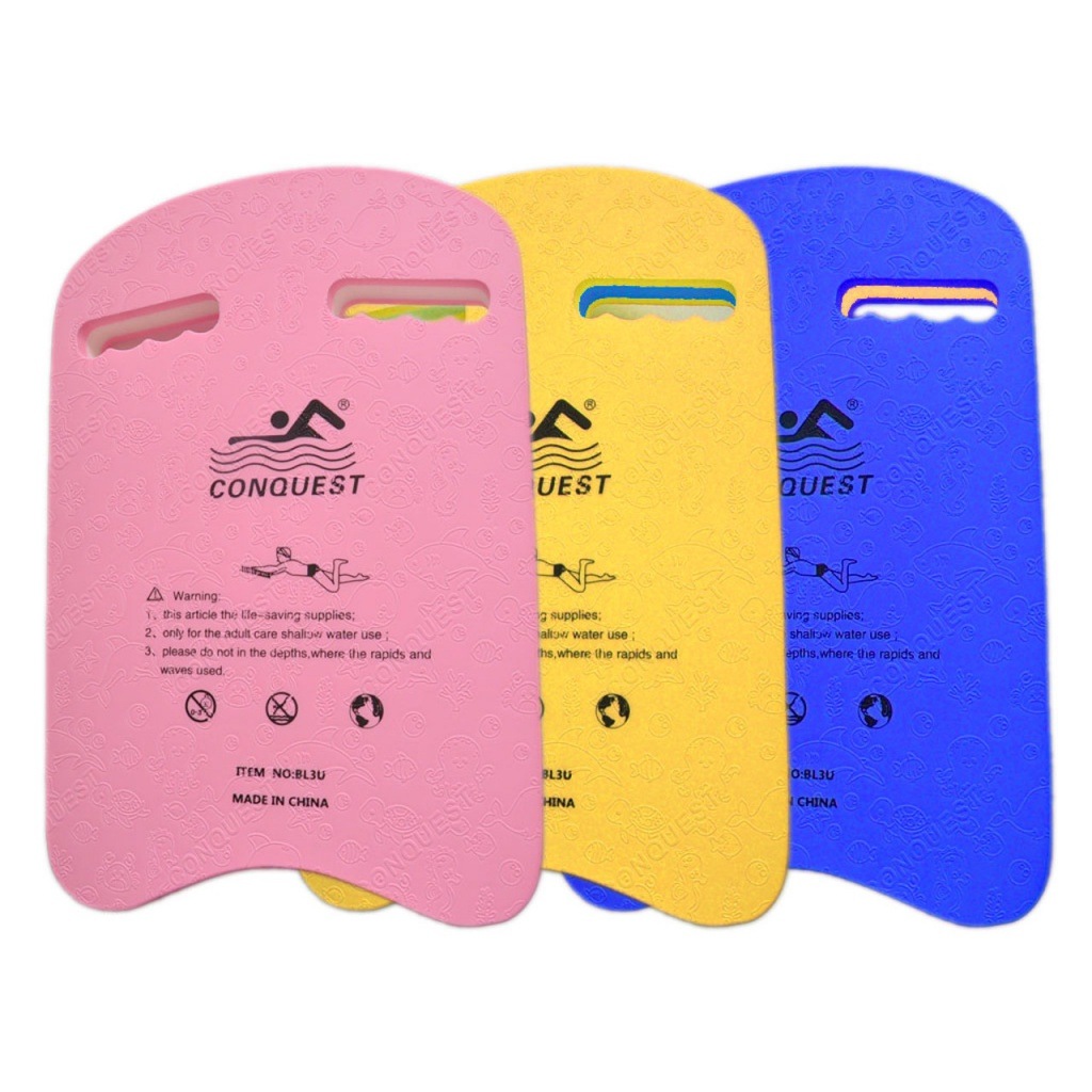 U-подібна трьохшарова дошка для плавання CONQUEST зроблена з легкого плавучого матеріалу – EVA (етиленвінілацетат). Її використовують для відпрацювання рухів ногами під час плавання, утримуючи дошку руками. На дошці є спеціальні прорізи для рук. Це створює зручність для міцнішого утримування дошки руками.