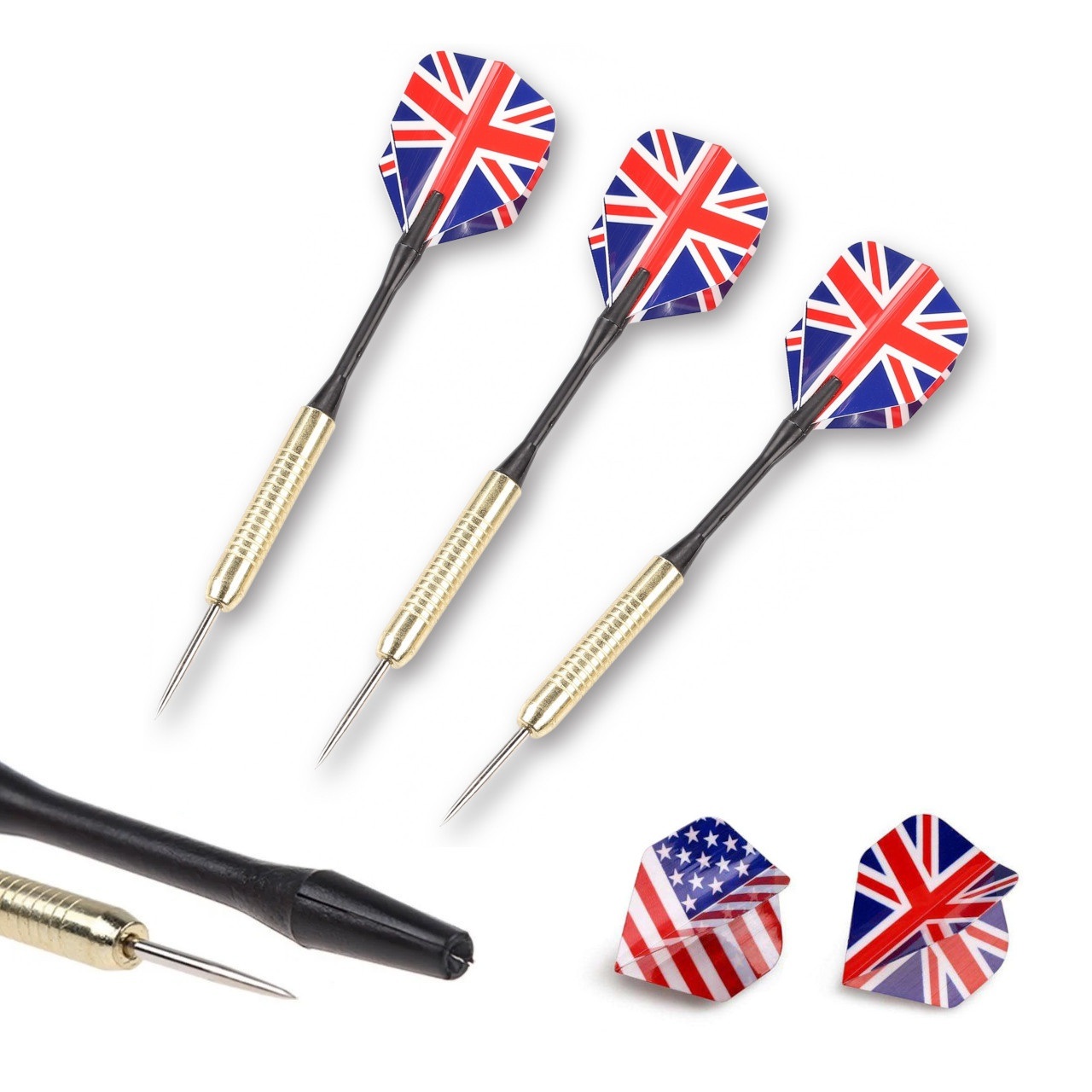 Комплект дротиків для гри в дартс аматорського рівня, вагою 18 грам Дротики призначені для класичних мішеней. У комплекті 3 дротики, які мають змінне оперіння.