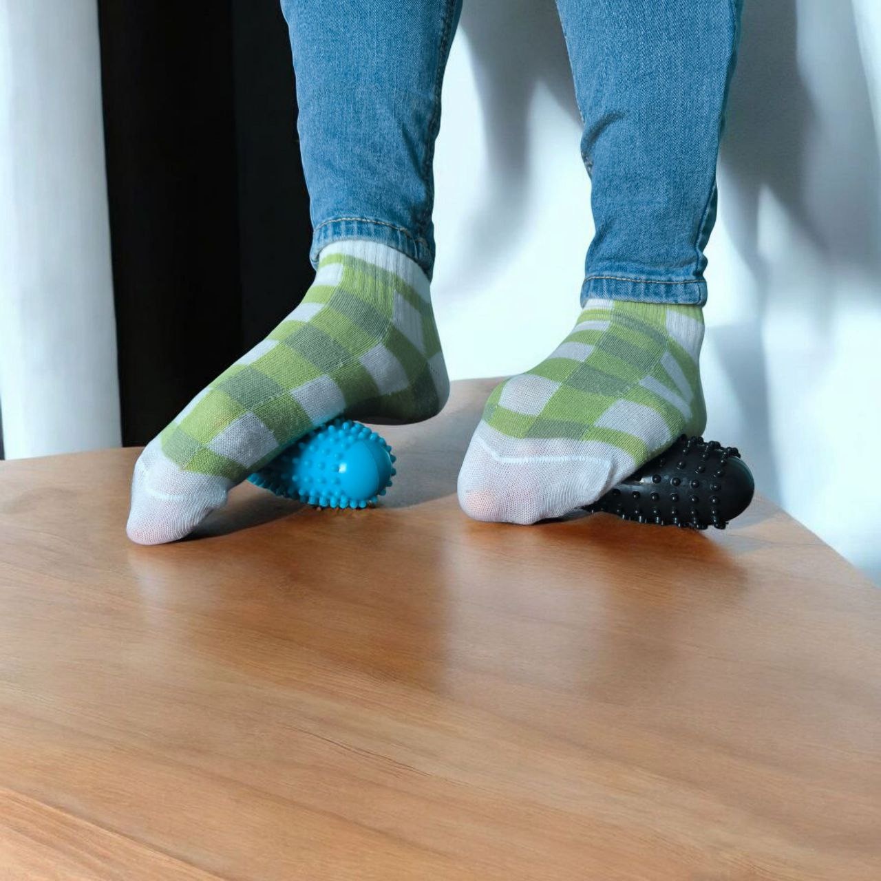 Поверхня покрита шипиками для стимуляції дрібних активних точок на шкірі та покращення локального кровотоку. Така рефлексотерапія повертає чутливість онімілим ділянкам.