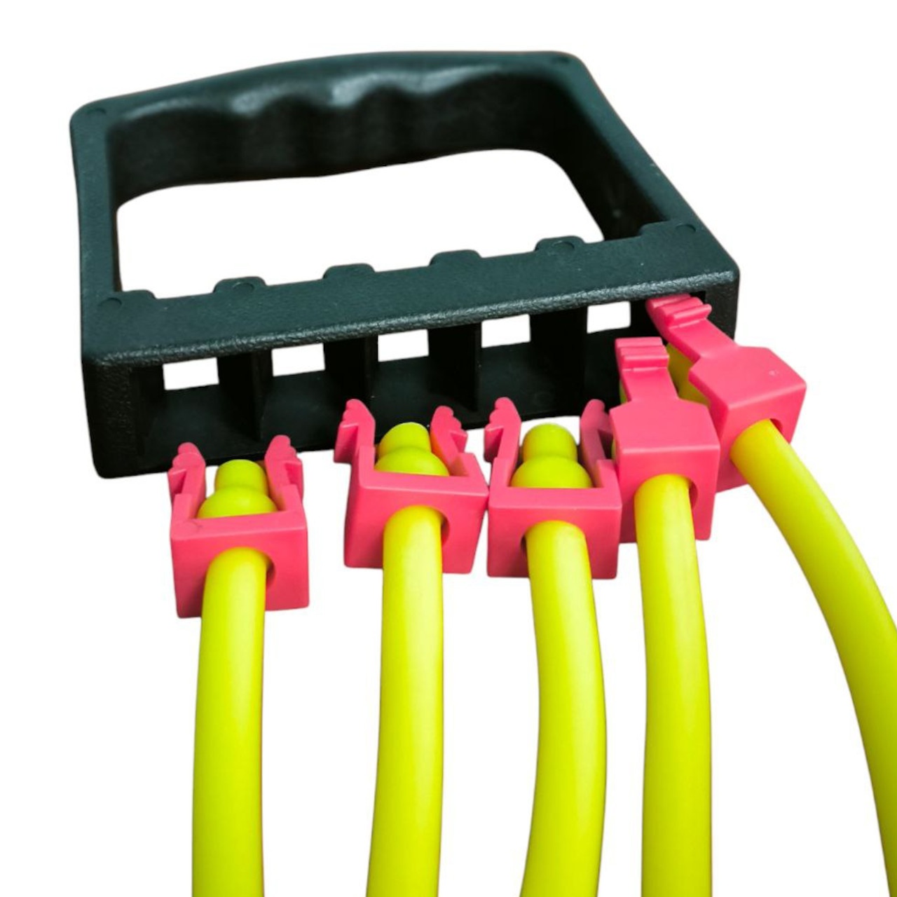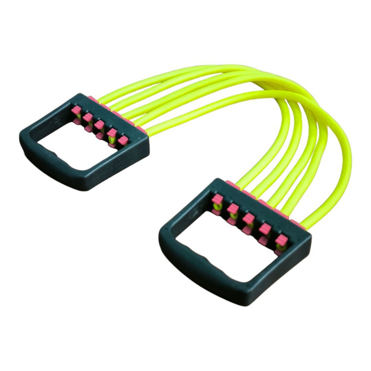 Плечовий еспандер складається з пластикових ручок та п’ятьох TPE знімних трубок, які кріпляться до ручок. Додаючи або видаляючи кількість трубок, можна регулювати навантаження еспандера. Еспандер плечовий гумовий призначений для тренування м’язів спини, рук, грудної клітки.