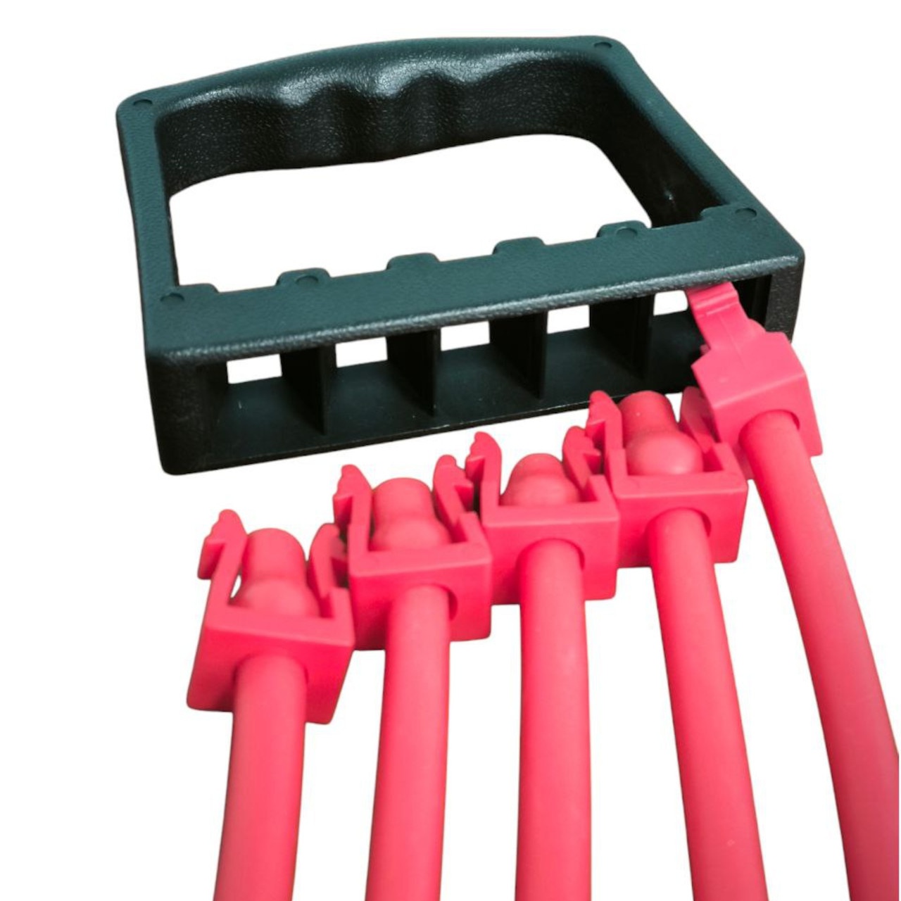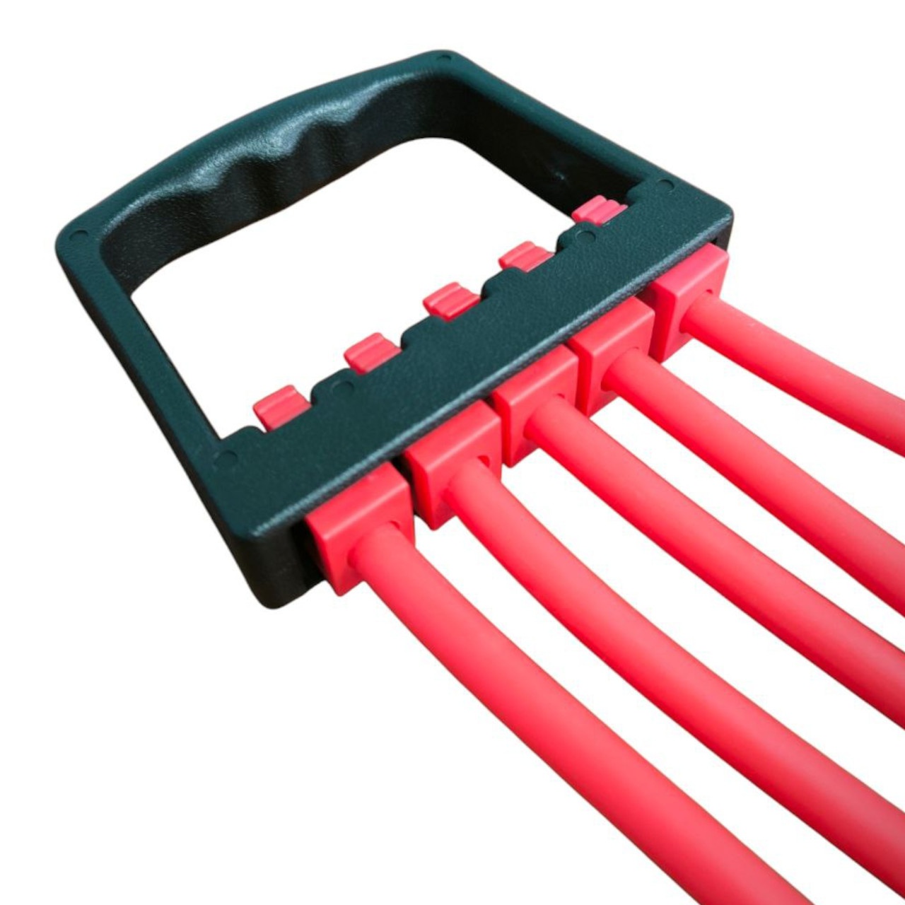 Плечовий еспандер складається з пластикових ручок та п’ятьох TPE знімних трубок, які кріпляться до ручок. Додаючи або видаляючи кількість трубок, можна регулювати навантаження еспандера. Еспандер плечовий гумовий призначений для тренування м’язів спини, рук, грудної клітки.