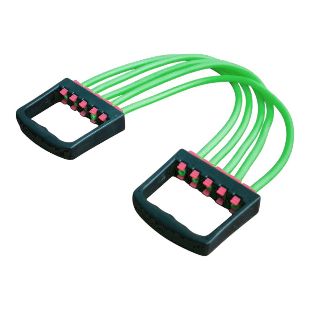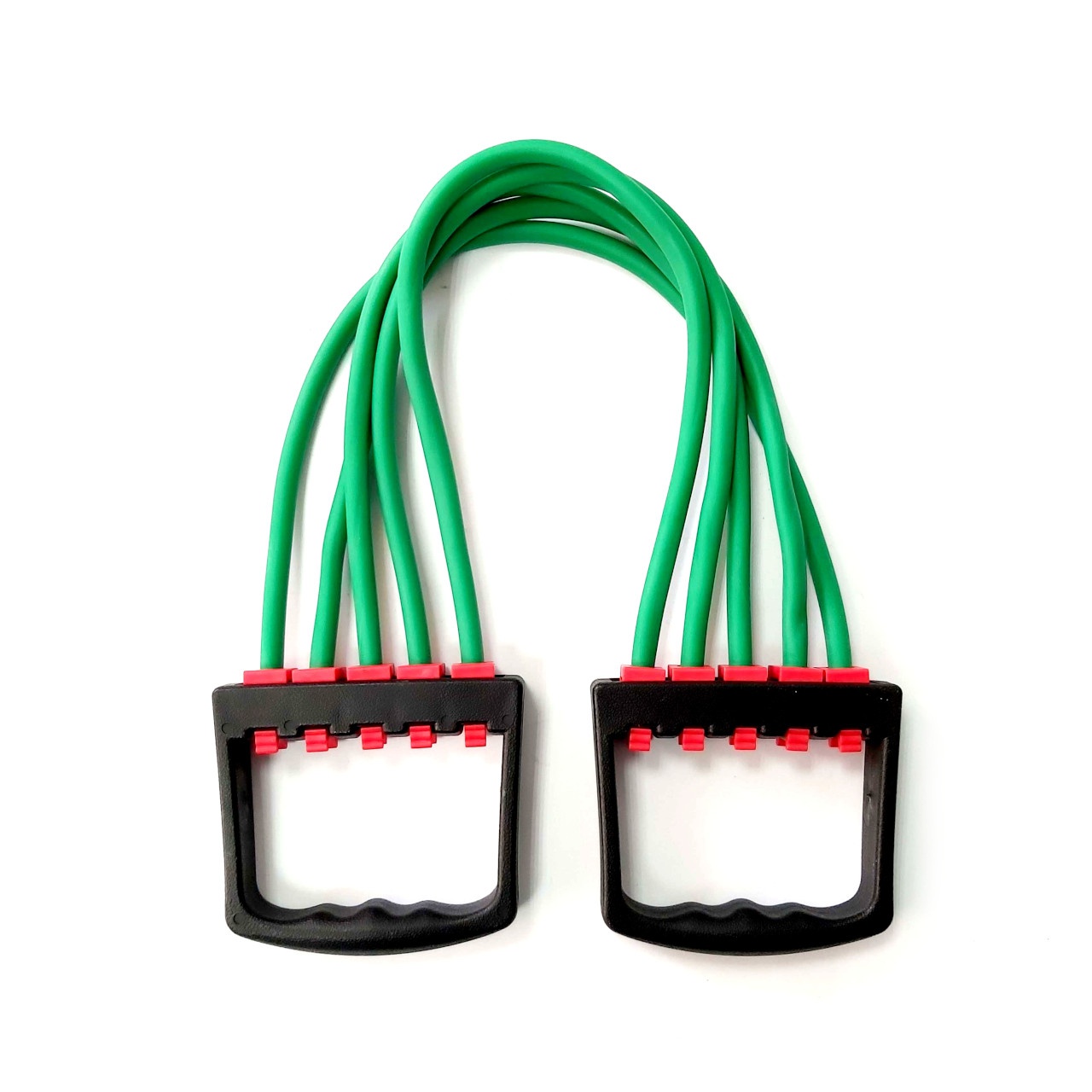 Плечовий еспандер складається з пластикових ручок та п’ятьох TPE знімних трубок, які кріпляться до ручок. Додаючи або видаляючи кількість трубок, можна регулювати навантаження еспандера. Еспандер плечовий гумовий призначений для тренування м’язів спини, рук, грудної клітки.