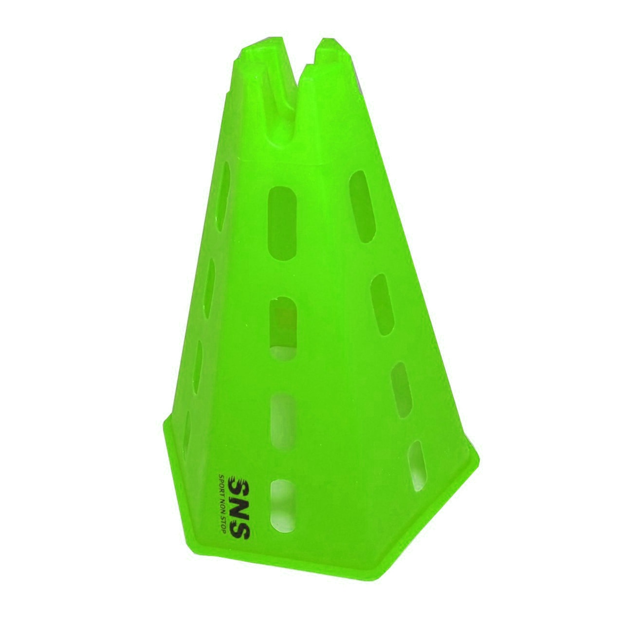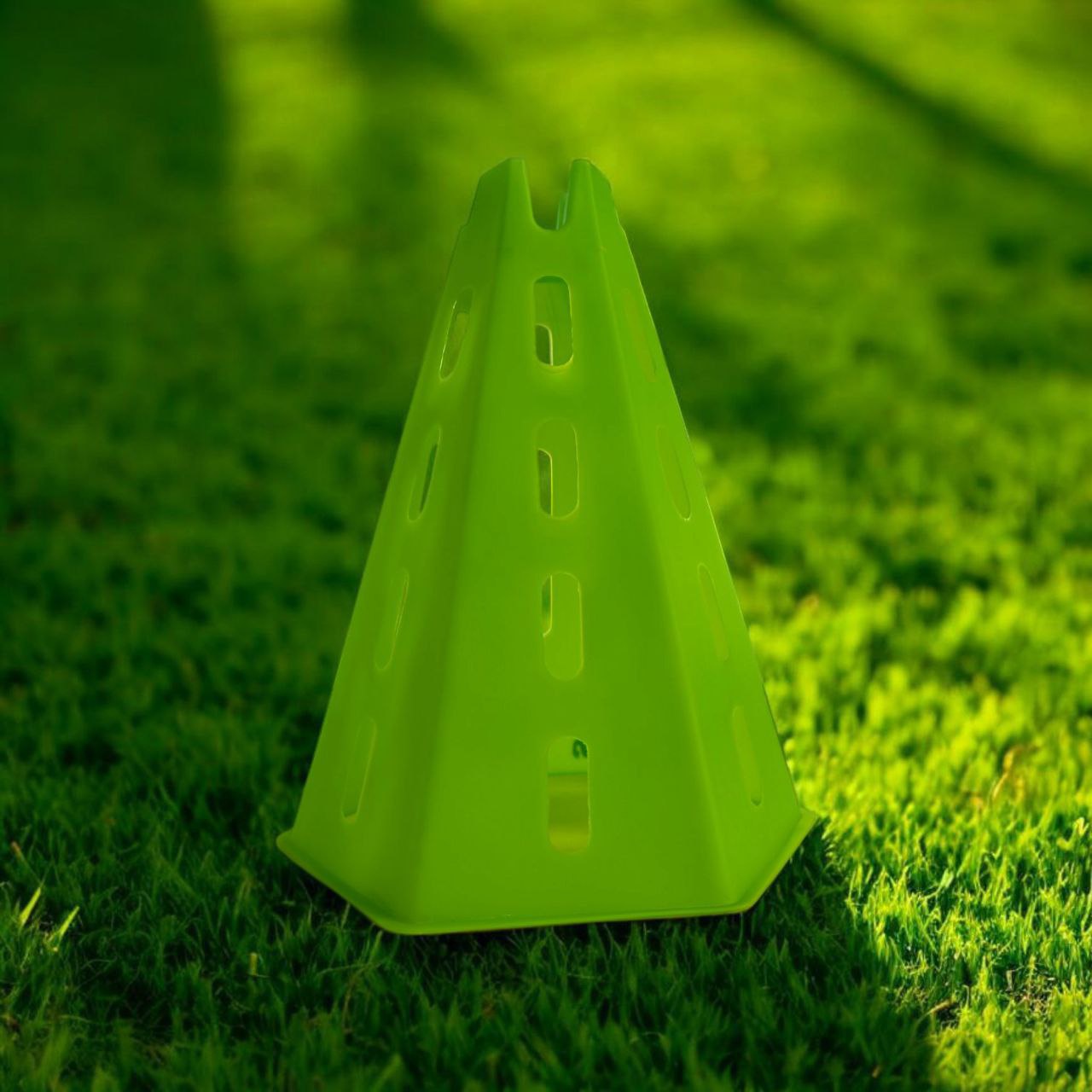 Фішка виконана у формі зрізаної піраміди з бічними отворами, що використовуються для розмітки ігрового поля. Отвори призначені для розміщення палиці-штанги, що дає змогу з’єднувати між собою декілька пірамід. Фішки розставляють на полі у потрібній комбінації для тренування чи гри. Комбінація конусів з ціпками дозволить побудувати різні бар’єри, лабіринти, стійки. У дошкільних закладах такі фішки використовують для навчання правилам дорожнього руху.