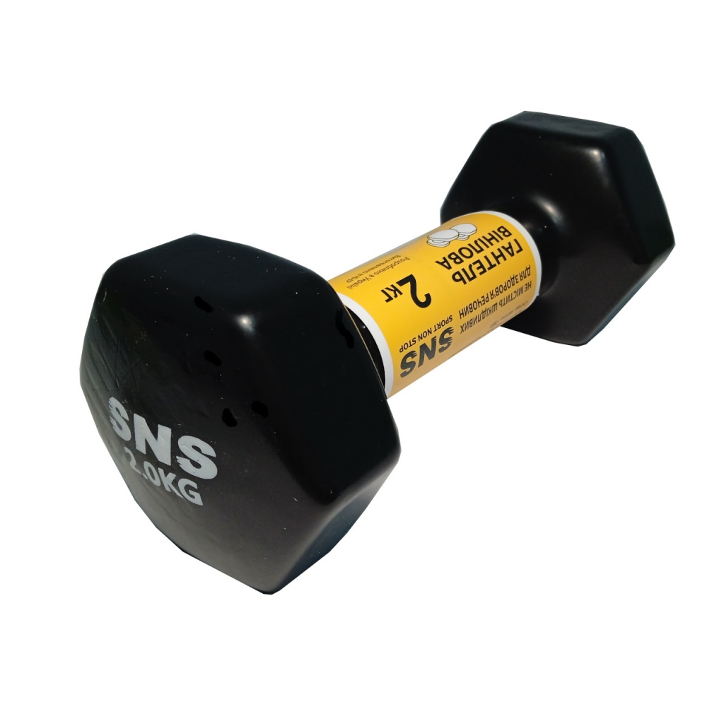 Литі гантелі SNS вироблені з чавуну і покриті вінілом з гладкою текстурою. Дана модель є одним із найзручніших снарядів для домашнього та зального використання. Кожна гантель має спеціальну кутову форму, яка не дозволяє виробу перекочуватися, що робить зручнішою як для експлуатації, так і для зберігання.
