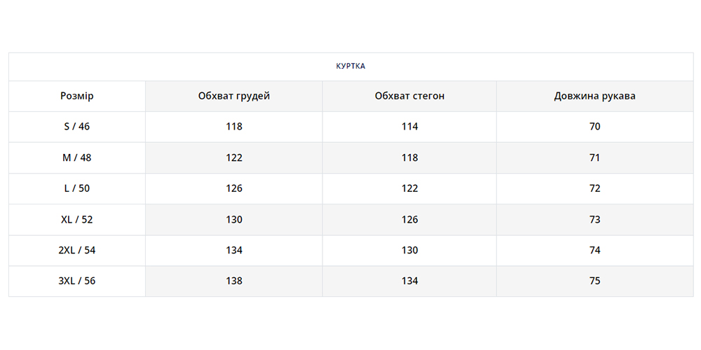 | Розмір | S, M, L, XL, XXL, 3XL |