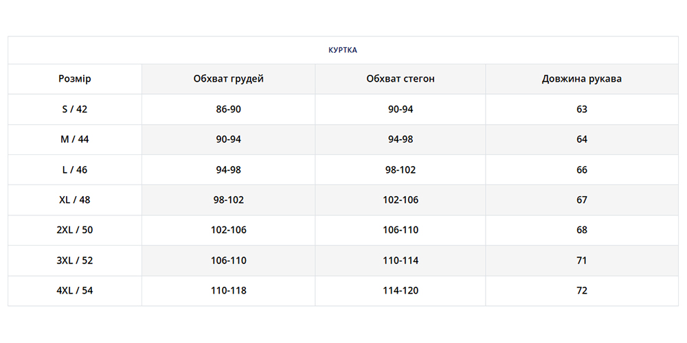 | Розмір | S, M, L, XL, XXL, 3XL |