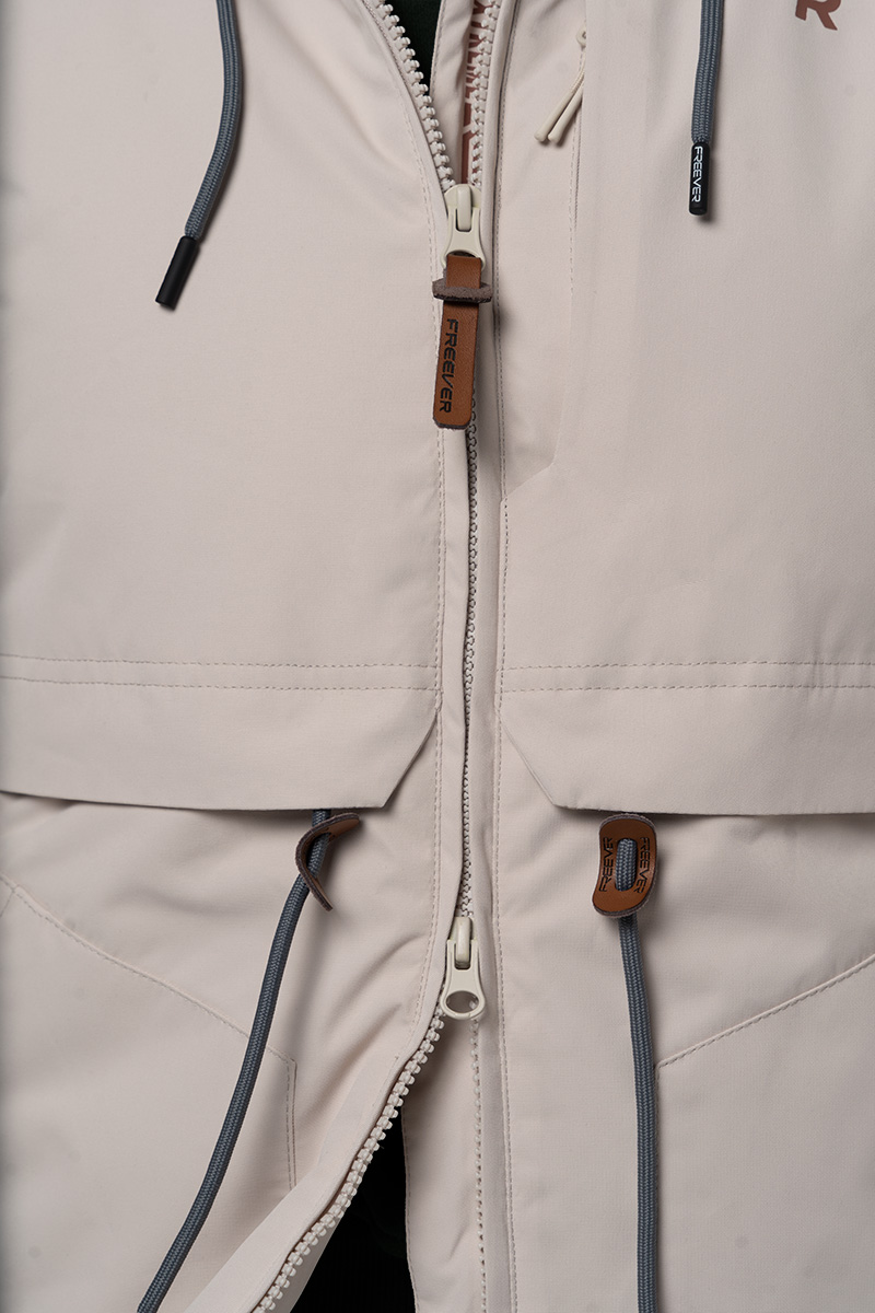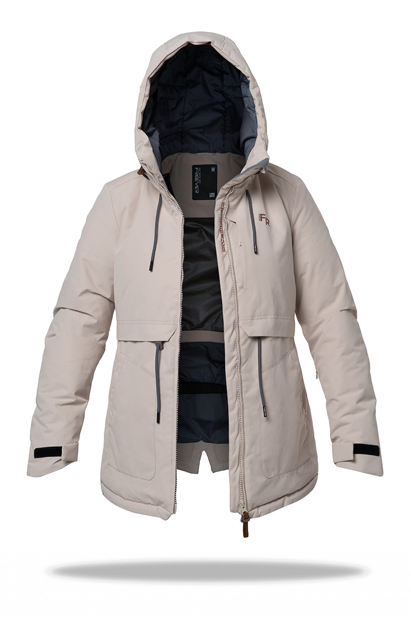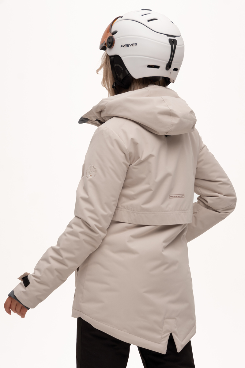 Гірськолижна жіноча куртка Freever AF 21767 бежева має практично всі атрибути лижної куртки, а виглядає як укорочена парка. Незвичайна, стильна та універсальна – для відпочинку в горах та міських зим. Високотехнологічна мембрана надійно захищає від вітру та води, не перешкоджаючи швидкому виведенню зайвої пари назовні. А еластичність тканини забезпечує максимально повну свободу рухів. Особливість підкладки – з технологією віддзеркалення та збереження тепла тіла на синтетичному утеплювачі нового покоління. Куртка застібається на блискавку з двома бігунками. Для додаткової герметичності одягу всі шви проклеєні, а блискавки не пропускають вологу. На рукавах подвійні манжети. Є снігозахисна спідниця, високий комір, капюшон, що регулюється в обсязі. Доповнюють модель 3 внутрішніх, 4 зовнішні кишені на блискавках плюс окремі кишені для скіпаса й маски. Рекомендації по догляду: делікатне прання при температурі не вище 30° гелеподібними засобами для кольорових тканин при локальному забрудненні попередньо можна використовувати рідкий засіб для виведення плям без вмісту хлору віджимання на низьких оборотах не сушити в сушильній машині