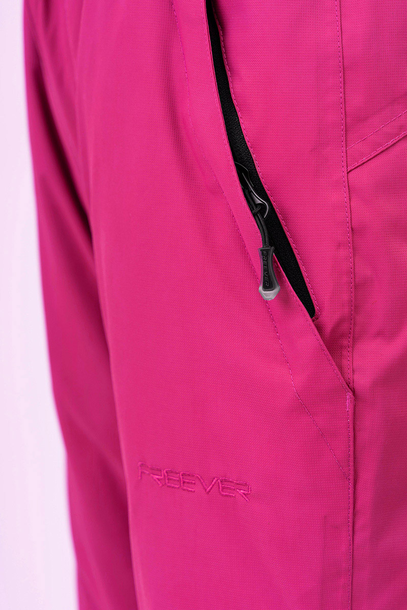 Гірськолижні штани дитячі Freever SF 21651 рожеві — стильна модель, у якій зручність і міцність поєднуються з високоякісними матеріалами й функціональними рішеннями. Мембранна тканина не боїться вітру і води, водночас дає змогу тілу дихати, а завдяки гарній еластичності, що не сковує рухів. Зручності на спуску додають прямий фасон і артикульований крій колін. М’яка підкладка на мікрофлісі зі штучним наповнювачем добре зберігає тепло, і приємна до тіла під час носіння штанів без термобілизни. Усі шви проклеєні. Пояс регулюється в об’ємі. Є знімні підтяжки й подвійні манжети. Тримати з собою потрібні дрібниці можна в бічних кишенях. Блискавки на них водонепроникні, тому переживати, що речі намокнуть не варто. Рекомендації по догляду: делікатне прання при температурі не вище 30° гелеподібними засобами для кольорових тканин при локальному забрудненні попередньо можна використовувати рідкий засіб для виведення плям без вмісту хлору віджимання на низьких оборотах не сушити в сушильній машині