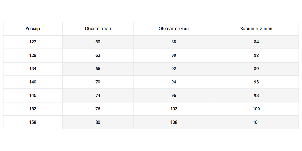 | Розмір | 122, 128, 134, 152, 158 |