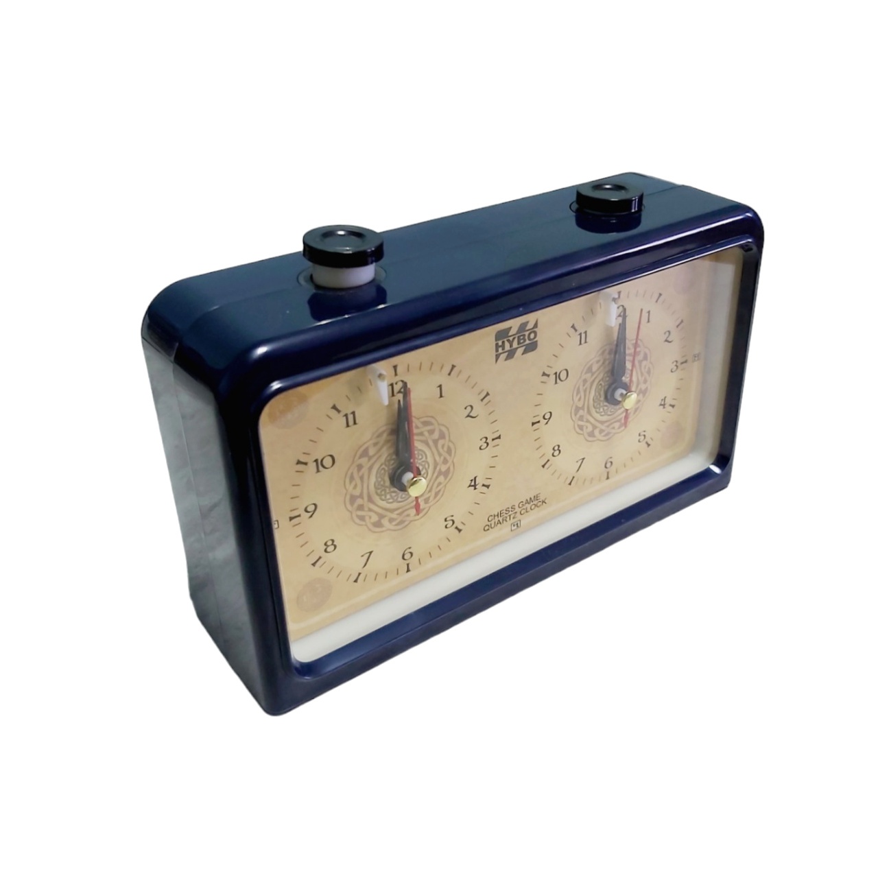 Кварцовий шаховий годинник використовується для контролю часу під час гри. За зовнішнім виглядом та функціональністю вони не відрізняються від механічних годинників. Мають два розділені циферблати та кнопки. На кожному циферблаті є прапорець фіксації закінчення часу. З зворотного боку знаходяться два поворотні механізми переведення стрілок для регулювання годинної та хвилинної стрілки. Працюють від однієї батареї ААА, яка не входить у комплект.