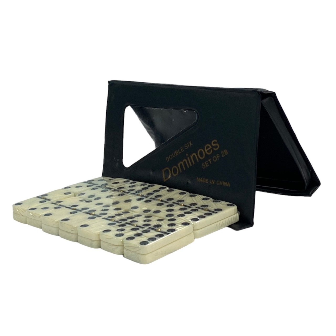 Доміно класичне виготовлене з міцного пластику з імітацією кольору слонової кістки. Футляр для зберігання кісточок виконаний із кольорового м’якого ПВХ.