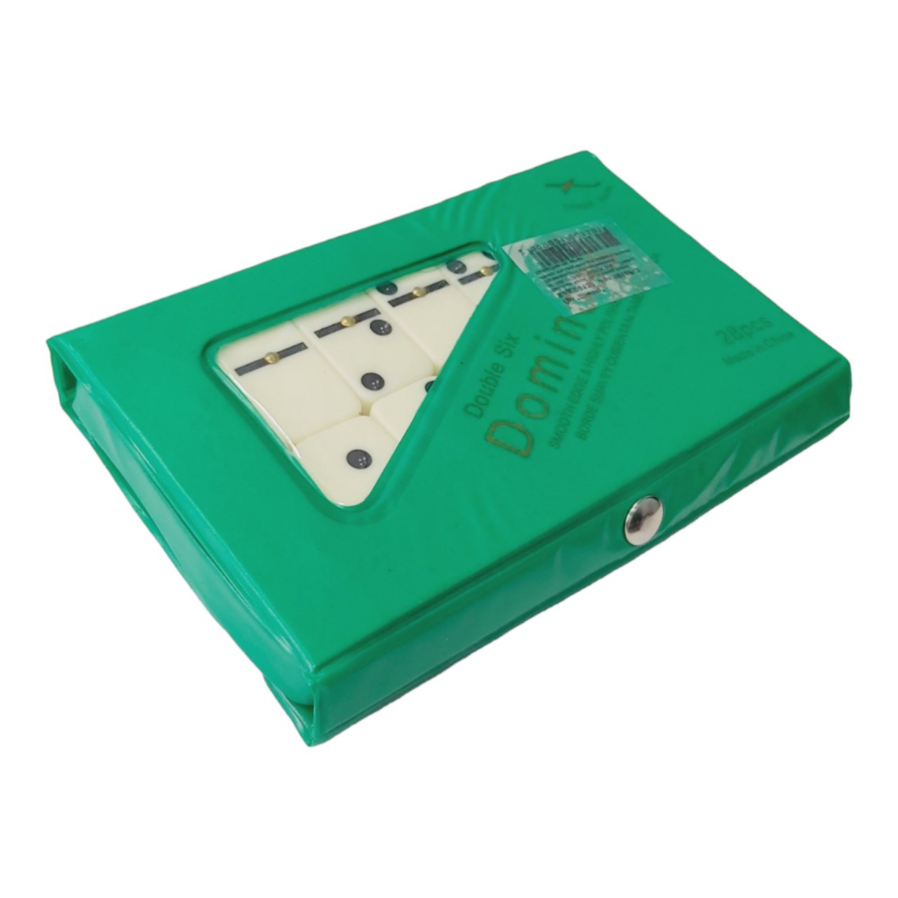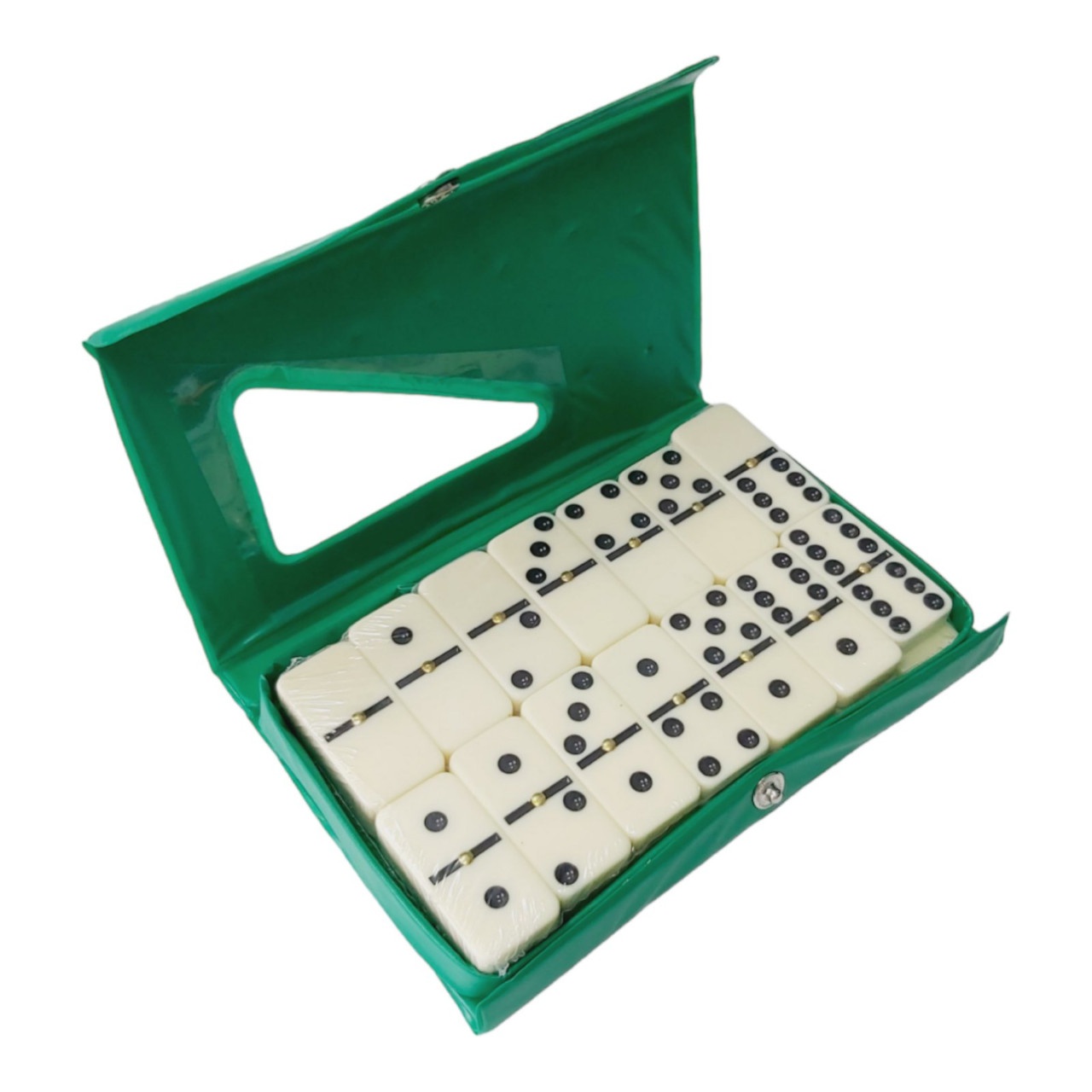 Доміно класичне виготовлене з міцного пластику з імітацією кольору слонової кістки. Футляр для зберігання кісточок виконаний із кольорового м’якого ПВХ.