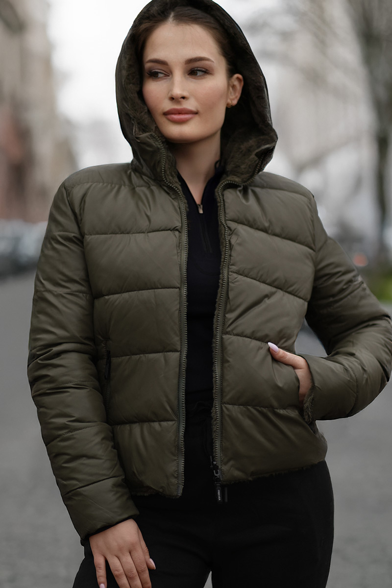 Куртка жіноча Freever AF 2277 хакі – для дівчат і жінок, які люблять йти в ногу з часом і при цьому почуватися взимку комфортно. Модель – двостороння: стьобаний поліестер з одного боку і м’яке штучне хутро з іншого. Це означає – універсальна та практична у будь-якій ситуації. З її допомогою вам будуть доступні красиві образи у спортивному та casual стилі. Куртку можна носити поверх водолазок, лонгслів, толстовок та светрів. Вона чудово поєднується зі спідницями, джинсами та класичними штанами. Застібається на двосторонню блискавку з двома бігунками. Усередині добре утеплена інноваційним волокном нового покоління. Від вітру та негоди додатково захищає подовжений комір, що переходить у каптур. З кожної сторони по дві зручні кишені. Рекомендації по догляду: делікатне прання при температурі не вище 30° гелеподібними засобами для кольорових тканин при локальному забрудненні попередньо можна використовувати рідкий засіб для виведення плям без вмісту хлору віджимання на низьких оборотах не сушити в сушильній машині можлива хімчистка