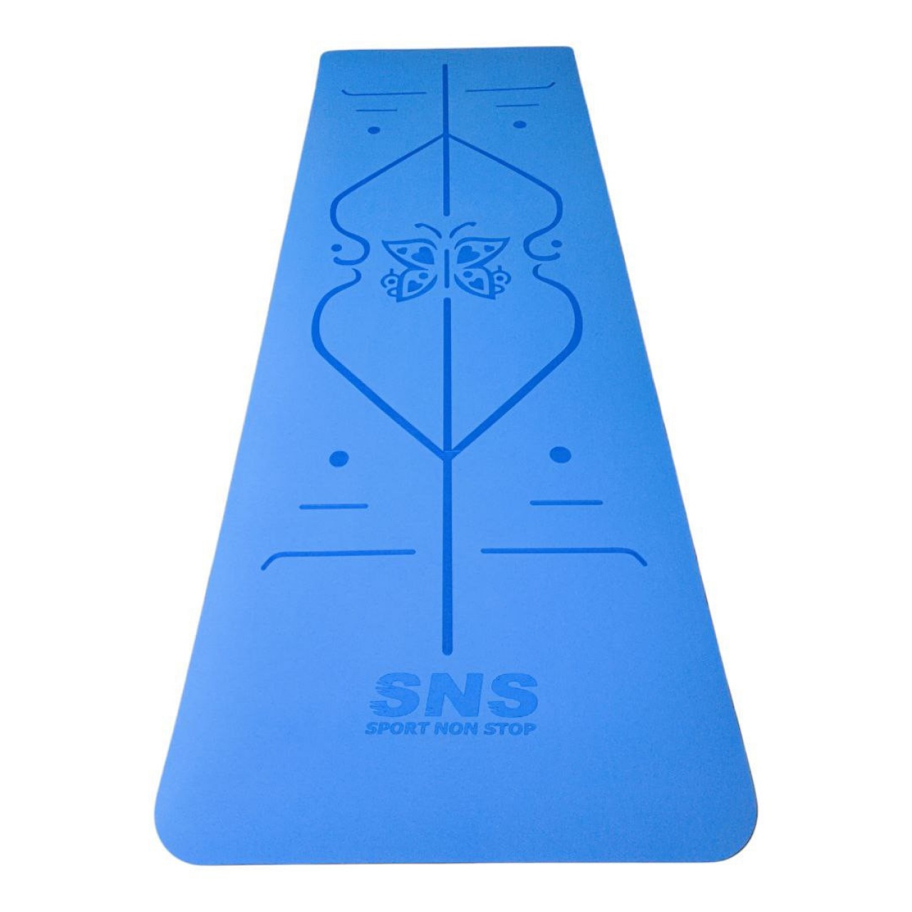 Килимок для йоги та фітнесу SNS МЕТЕЛИК виготовлений з термопластичного еластомеру (ТРЕ). Дана модель незамінна для занять фітнесом, йогой, лікувальною фізкультурою. На верхній частині килимка нанесена розмітка, яка дозволяє правильно виконувати асани з йоги, на нижній частині зроблені протиковзкові насічки, які міцно утримують килимок на різноманітному покритті. У згорнутому виді килимок не займає багато місця та є зручним для перенесення.