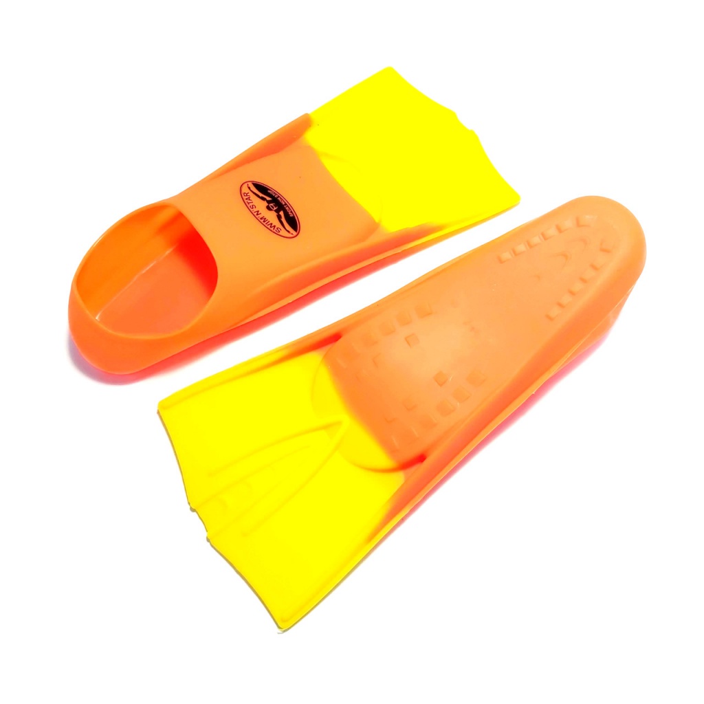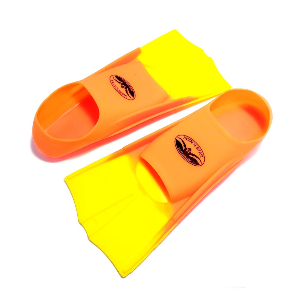 Короткі яскраві двокольорові ласти SWIM-N-STAR від SNS здебільшого використовують для тренувань у басейні. Виготовлені з високоякісного силікону. Мають закриту п’яту, що дозволяє надійно зафіксувати ласту на нозі. Також мають додаткові ребра жорсткості для більшої ефективності. Ласти SWIM-N-STAR зручні у використанні і є незамінним помічником під час тренувань.