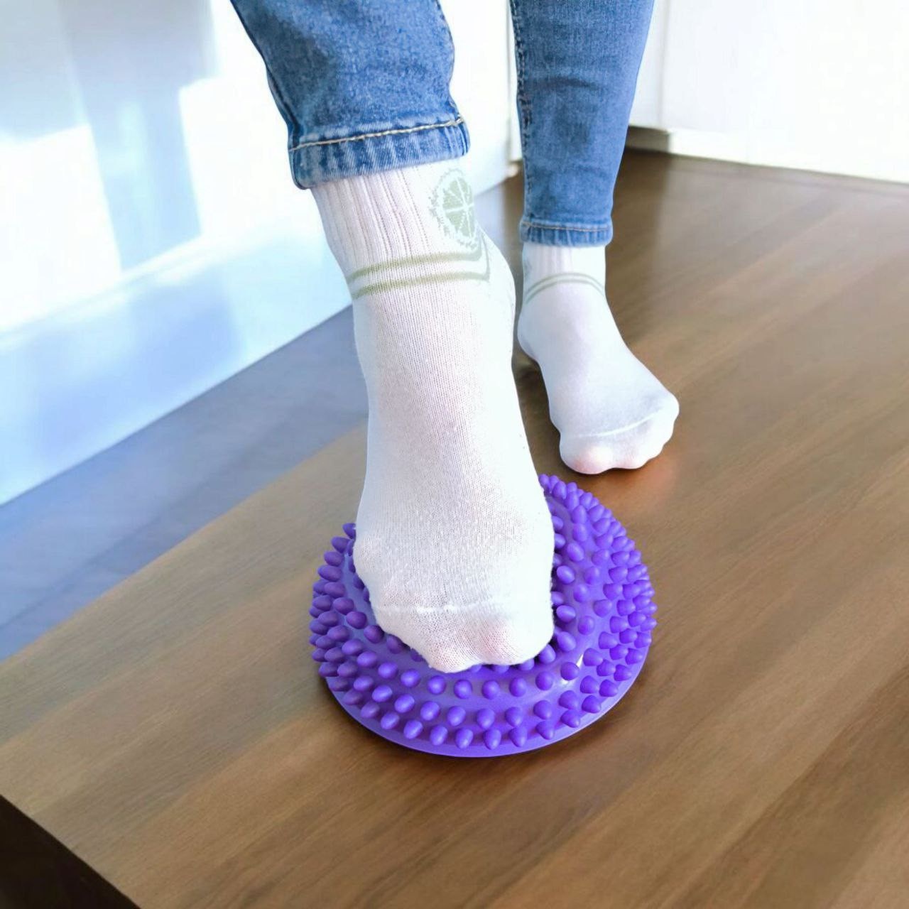Масажна півсфера «Їжачок» – це балансувальна напівсфера з масажною поверхнею. Півсфера порожня, заповнена повітрям. На сферичній поверхні розташовані заокруглені шипи. Посеред плоскої частини розташований ніпель, через який можна регулювати жорсткість. Півсфера використовується для вправ на балансування, розвиток рухів та тактильного сприйняття дітей.
