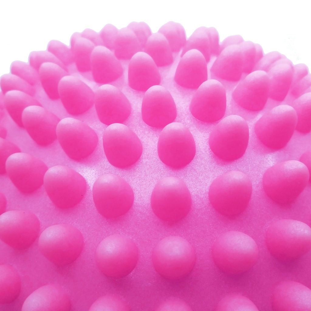 Масажна півсфера «Їжачок» – це балансувальна напівсфера з масажною поверхнею. Півсфера порожня, заповнена повітрям. На сферичній поверхні розташовані заокруглені шипи. Посеред плоскої частини розташований ніпель, через який можна регулювати жорсткість. Півсфера використовується для вправ на балансування, розвиток рухів та тактильного сприйняття дітей.
