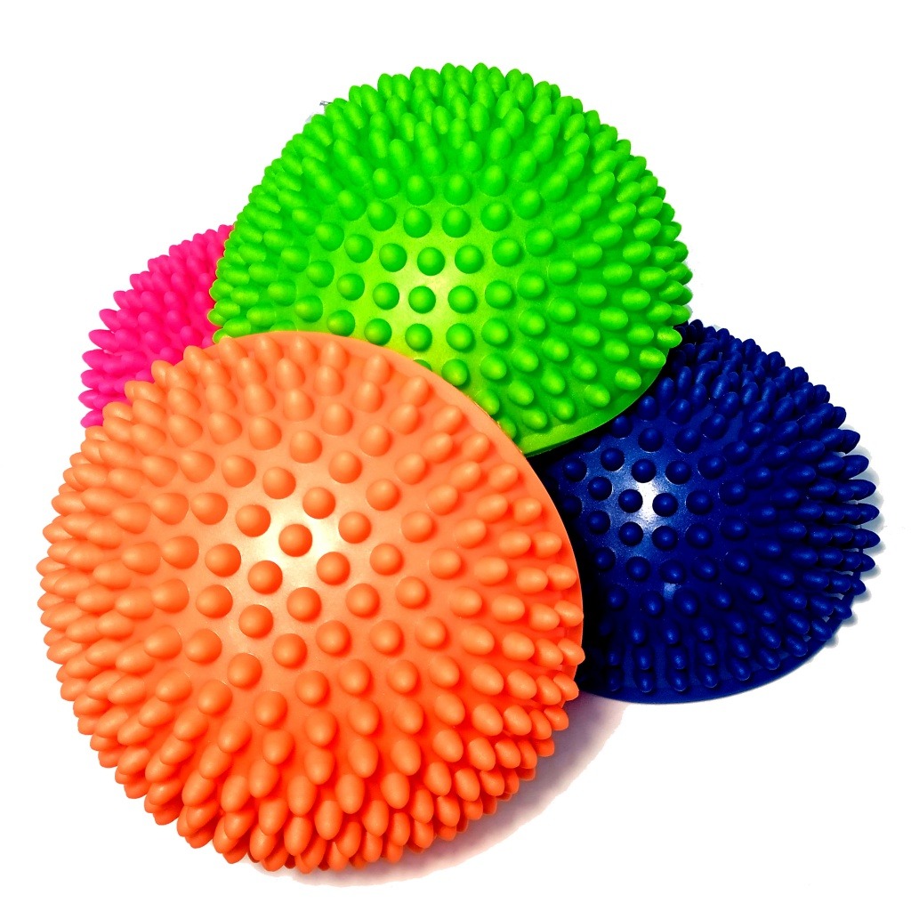 Масажна півсфера «Їжачок» – це балансувальна напівсфера з масажною поверхнею. Півсфера порожня, заповнена повітрям. На сферичній поверхні розташовані заокруглені шипи. Посеред плоскої частини розташований ніпель, через який можна регулювати жорсткість. Півсфера використовується для вправ на балансування, розвиток рухів та тактильного сприйняття дітей.