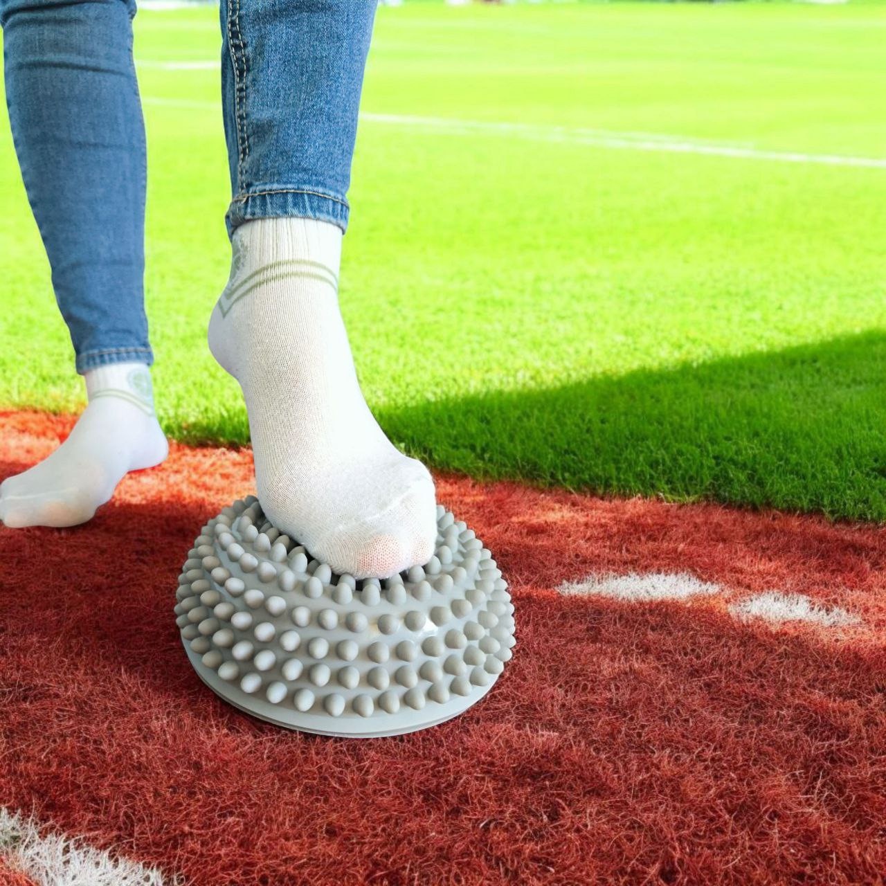 Масажна півсфера «Їжачок» – це балансувальна напівсфера з масажною поверхнею. Півсфера порожня, заповнена повітрям. На сферичній поверхні розташовані заокруглені шипи. Посеред плоскої частини розташований ніпель, через який можна регулювати жорсткість. Півсфера використовується для вправ на балансування, розвиток рухів та тактильного сприйняття дітей.