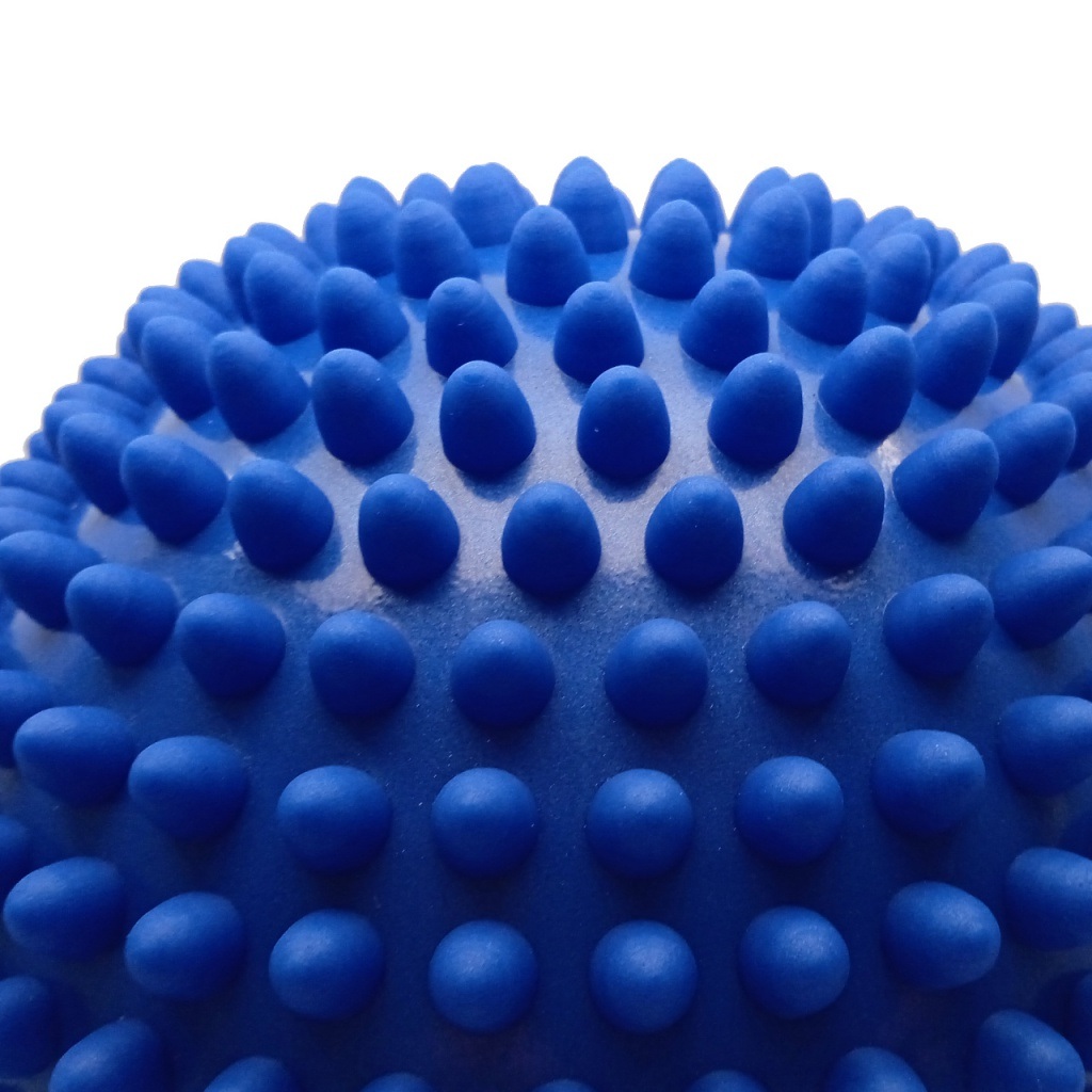 Масажна півсфера «Їжачок» – це балансувальна напівсфера з масажною поверхнею. Півсфера порожня, заповнена повітрям. На сферичній поверхні розташовані заокруглені шипи. Посеред плоскої частини розташований ніпель, через який можна регулювати жорсткість. Півсфера використовується для вправ на балансування, розвиток рухів та тактильного сприйняття дітей.