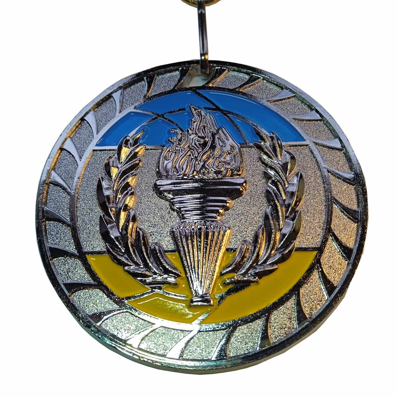 Медаль призначена для нагородження переможців змагань. На аверсі опукле зображення факелу, лаврового вінку. Реверс – матовий з кантом. Медаль продається у комплекті зі стрічкою.