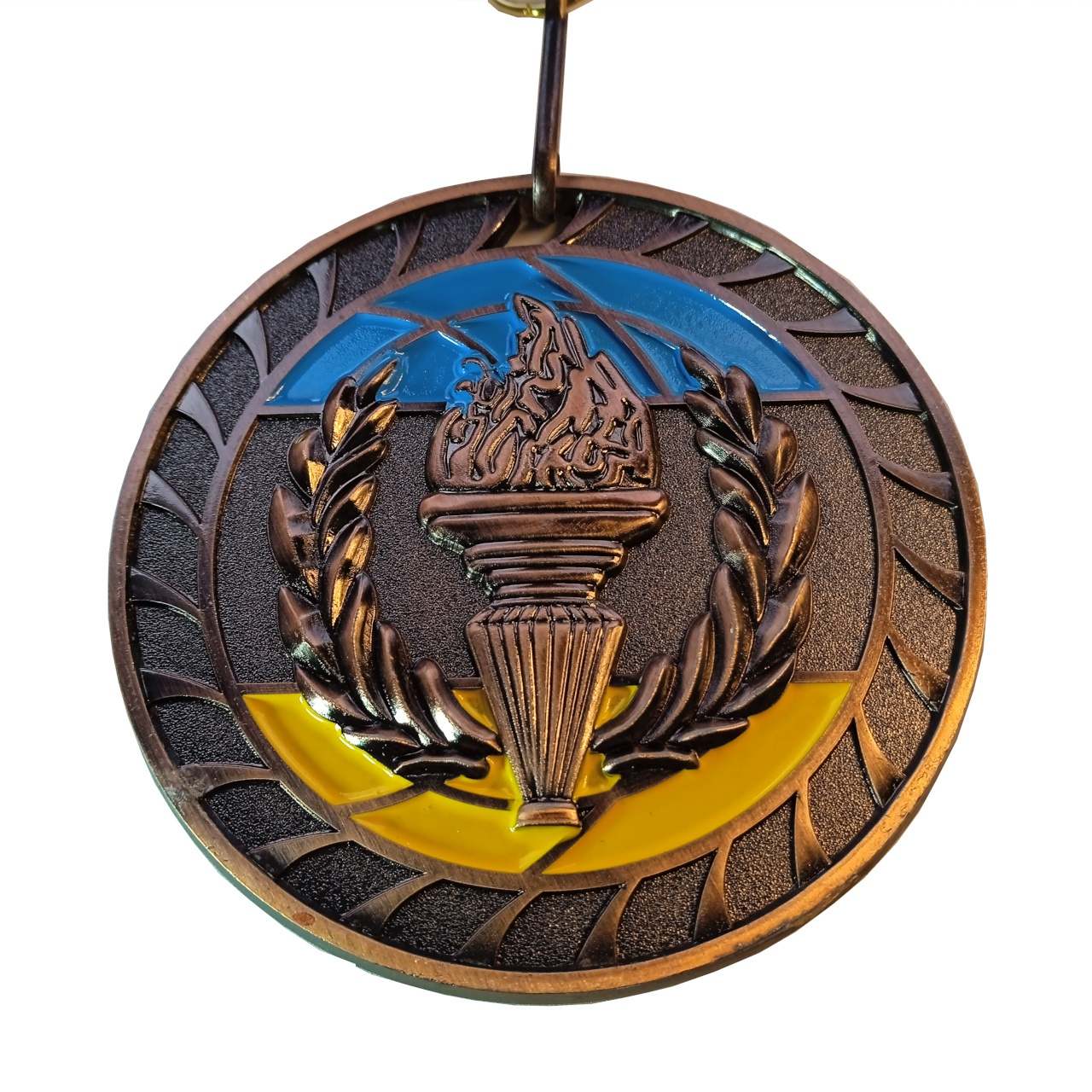 Медаль призначена для нагородження призерів змагань. На аверсі опукле зображення факелу, лаврового вінку. Реверс – матовий з кантом. Медаль продається у комплекті зі стрічкою.