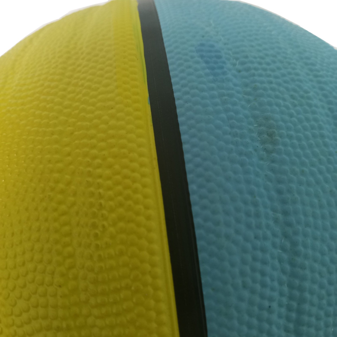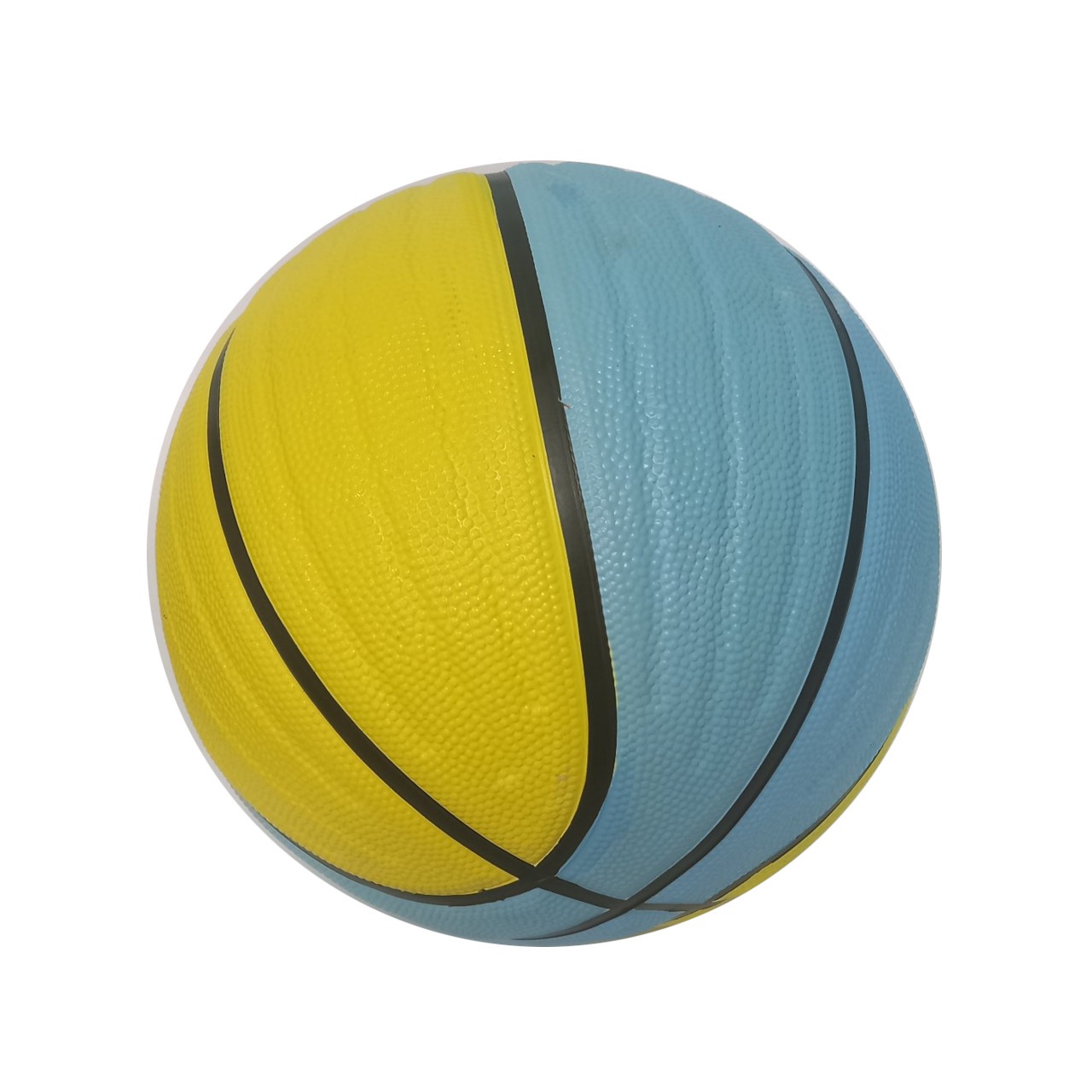 М’яч виконаний у яскравому жовто-блакитному кольорі, який робить його добре помітним навіть при тьмяному освітленні або на строкатому тлі. Розмір 7 є стандартним для дорослого баскетболу та підходить для гравців віком від 13 років.