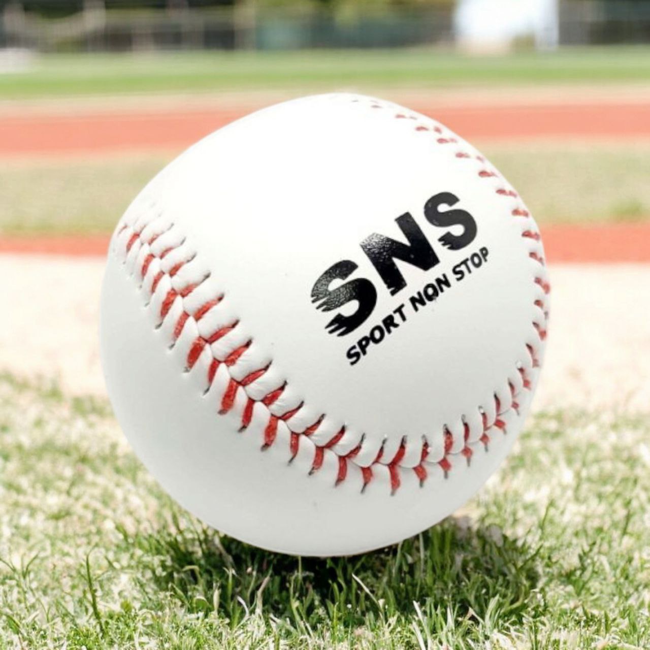 М’яч для гри у бейсбол SNS призначений для гри у бейсбол у віковій категорії 10-12 років. Сфера м’яча виконана з гуми, верхня оболонка з елементів штучної шкіри, які пошиті японським швом, що надає м’ячу більше зчеплення з рукавичкою та точність кидка, довжина стібка 4-5 мм. Компресія м’ячика 4 атмосфери.