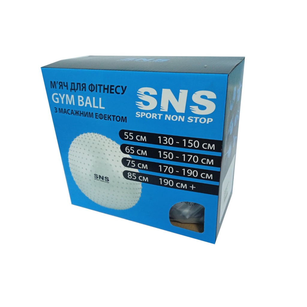 **М’яч для фітнесу з масажними шипами SNS (75 см)** — це фітбол, призначений для занять аеробікою, фітнесом, пілатесом та лікувальною фізкультурою. Вправи з м’ячем впливають на всі групи м’язів, сприяють розвитку координації, поліпшенню постави, розвитку силових здібностей та гнучкості.
