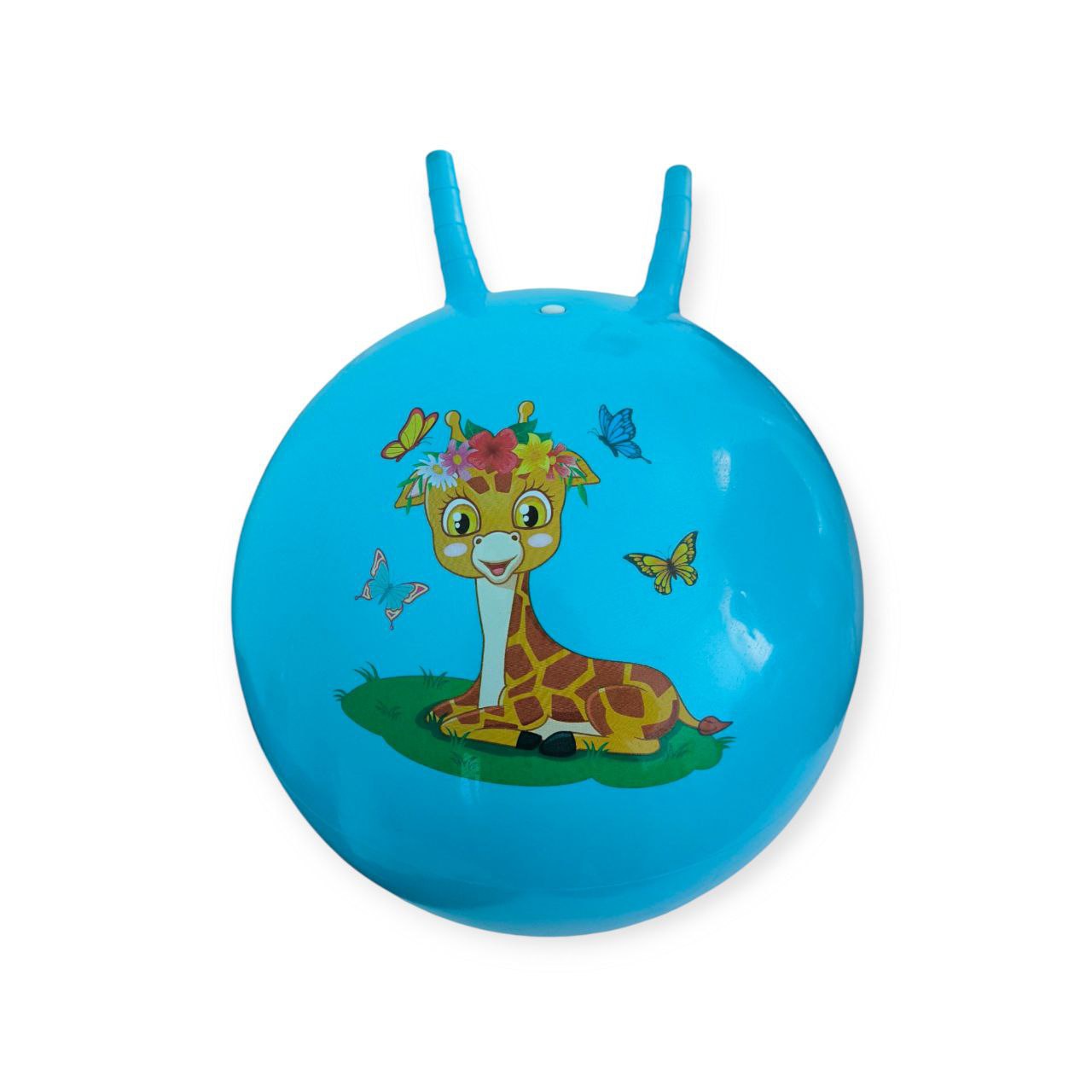 **М’яч дитячий стрибун (з ріжками)** — це надувний м’яч-стрибун, виготовлений з міцного ПВХ. Замість однієї ручки модель має дві ручки у формі ріжок, які забезпечують додаткову зручність і стійкість під час стрибків, дозволяючи дитині краще триматися та контролювати рухи.