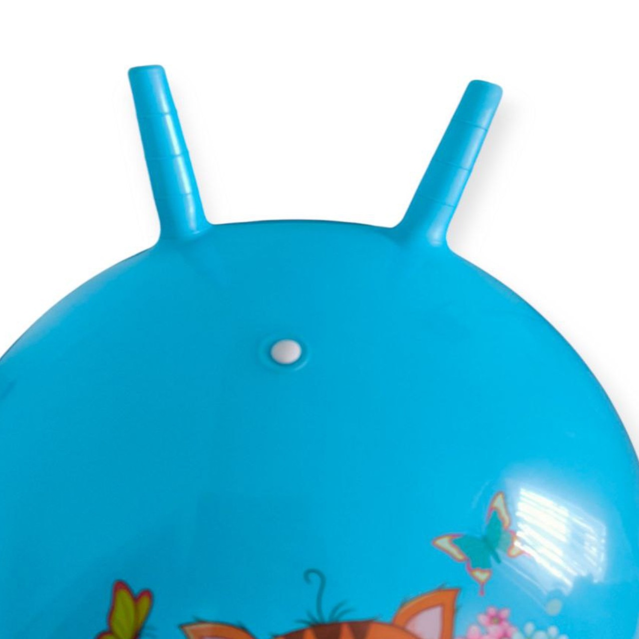 **М’яч дитячий стрибун (з ріжками)** — це надувний м’яч-стрибун, виготовлений з міцного ПВХ. Замість однієї ручки модель має дві ручки у формі ріжок, які забезпечують додаткову зручність і стійкість під час стрибків, дозволяючи дитині краще триматися та контролювати рухи.