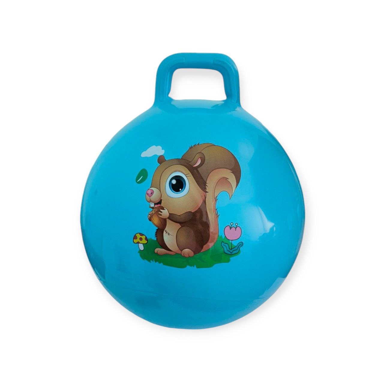 **М’яч дитячий стрибун (з ручкою)** — це надувний м’яч-стрибун, також відомий як поп-м’яч або кенгуру, виготовлений з міцного ПВХ. Модель має ручку зверху, яка дозволяє дитині триматися під час стрибків, забезпечуючи безпеку та контроль.