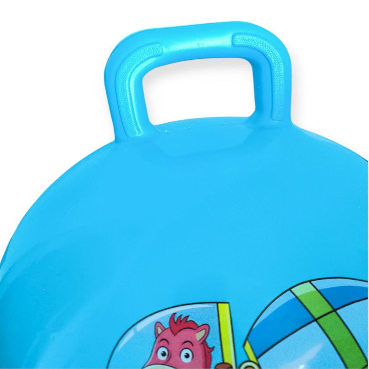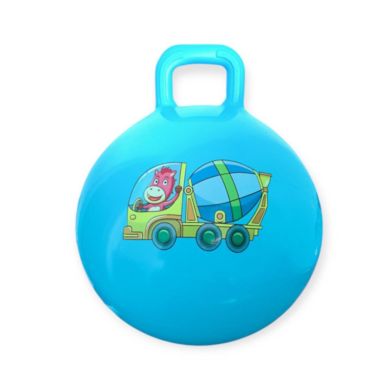 **М’яч дитячий стрибун (з ручкою)** — це надувний м’яч-стрибун, також відомий як поп-м’яч або кенгуру, виготовлений з міцного ПВХ. Модель має ручку зверху, яка дозволяє дитині триматися під час стрибків, забезпечуючи безпеку та контроль.