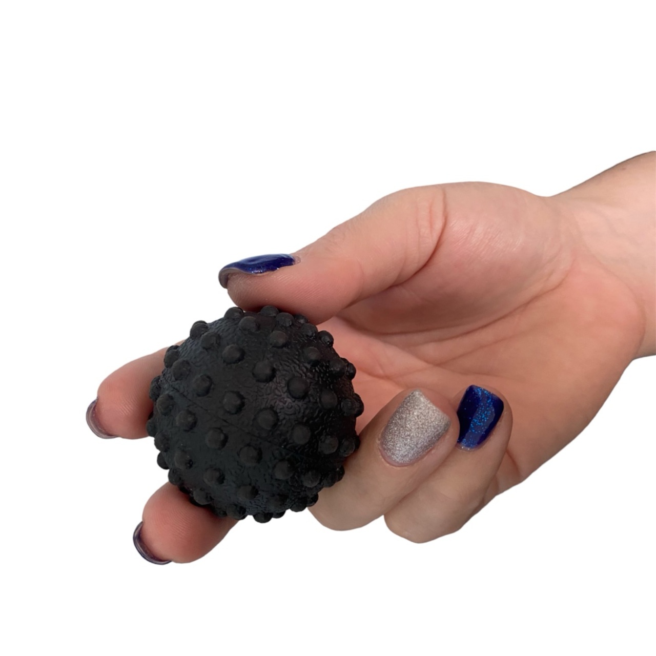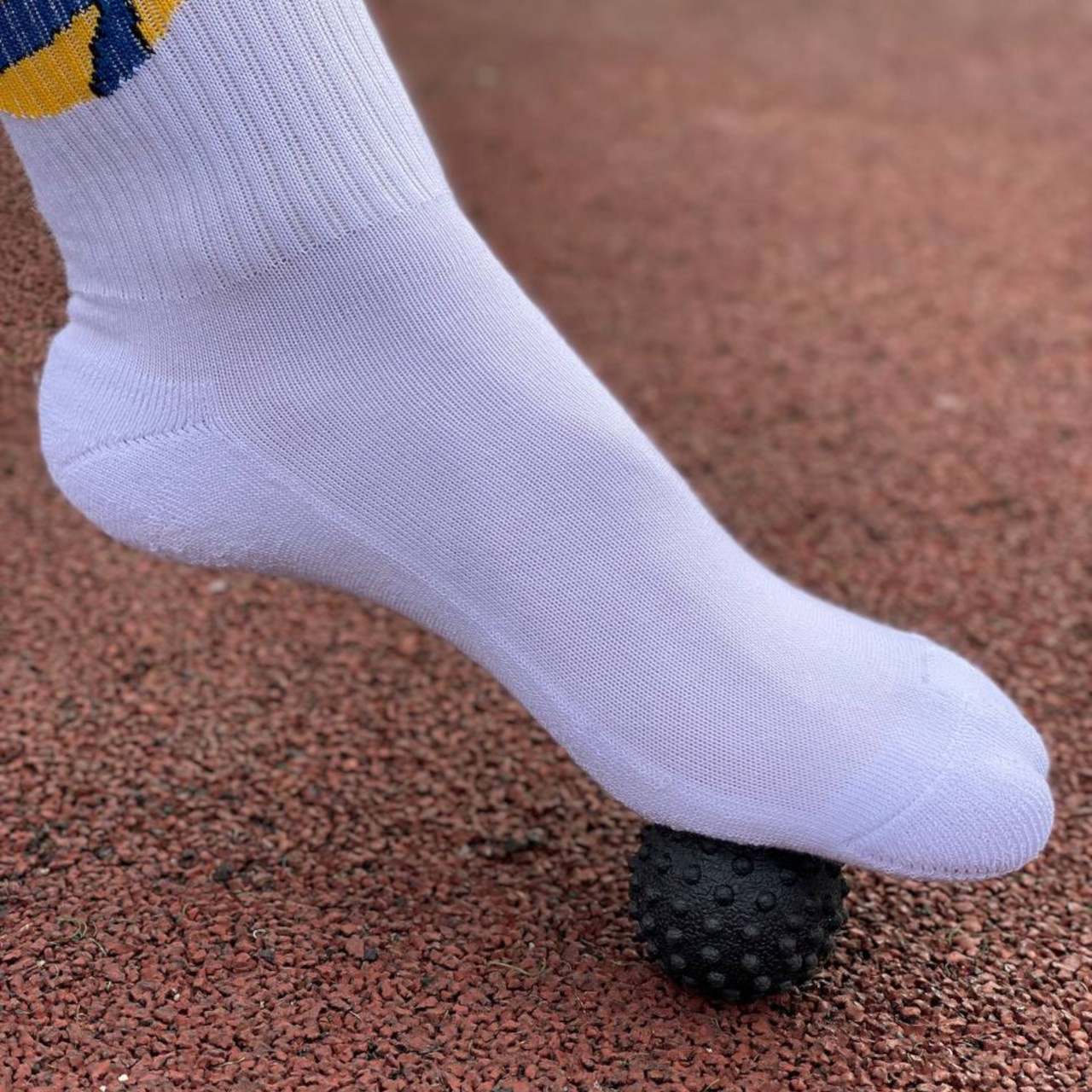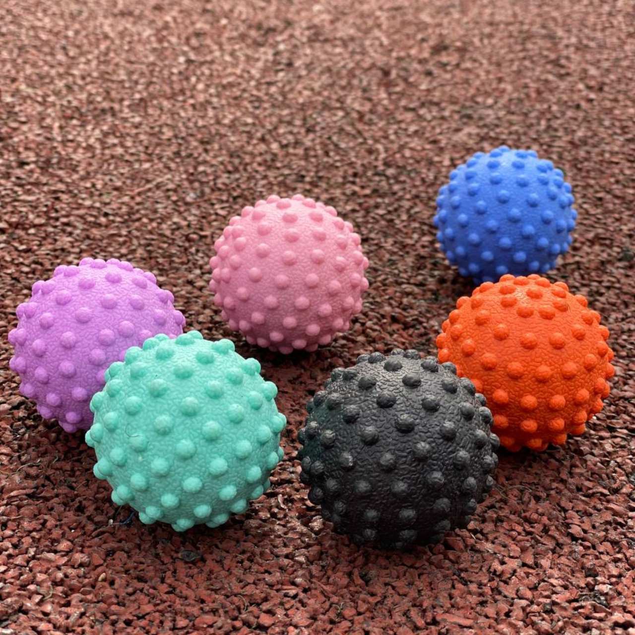 М’яч масажний виготовлений з твердої гуми з ПВХ оболонкою. На відміну від м’ячів для МФР цей м’ячик продавлюється із зусиллям. Застосовується для відновлення м’язів після активних тренувань та великих навантажень.