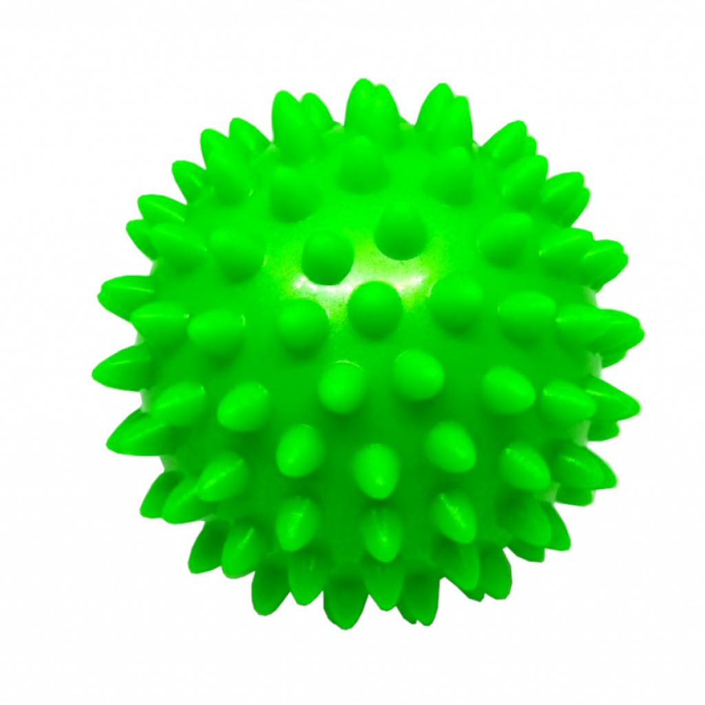М’ячі надувні для масажу мають закруглені м’які масажні шипи, які ефективно масажують рефлексогенні зони, але не травмують шкіру навіть при сильному натисканні. Жорсткість м’ячика можна контролювати шляхом здування (надування) через ніпель. Голкова поверхня м’яча також впливає на нервові закінчення. Масажні надувні м’ячі рекомендовані під час занять лікувальною гімнастикою. Часто їх використовують для оздоровчого масажу ніг, рук, спини та рефлексотерапії всіх частин тіла. Масаж з м’ячем сприяє підвищенню тонусу шкіри та покращенню кровообігу. Заняття з м’ячем знімає стрес та пом’якшується біль.