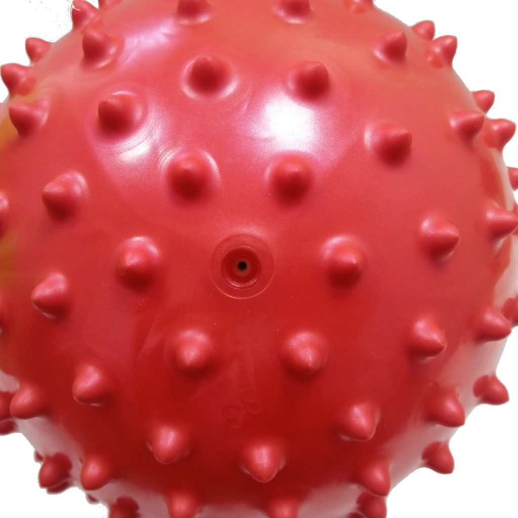М’ячі надувні для масажу мають закруглені м’які масажні шипи, які ефективно масажують рефлексогенні зони, але не травмують шкіру навіть при сильному натисканні. Жорсткість м’ячика можна контролювати шляхом здування (надування) через ніпель. Голкова поверхня м’яча також впливає на нервові закінчення. Масажні надувні м’ячі рекомендовані під час занять лікувальною гімнастикою. Часто їх використовують для оздоровчого масажу ніг, рук, спини та рефлексотерапії всіх частин тіла. Масаж з м’ячем сприяє підвищенню тонусу шкіри та покращенню кровообігу. Заняття з м’ячем знімає стрес та пом’якшується біль.