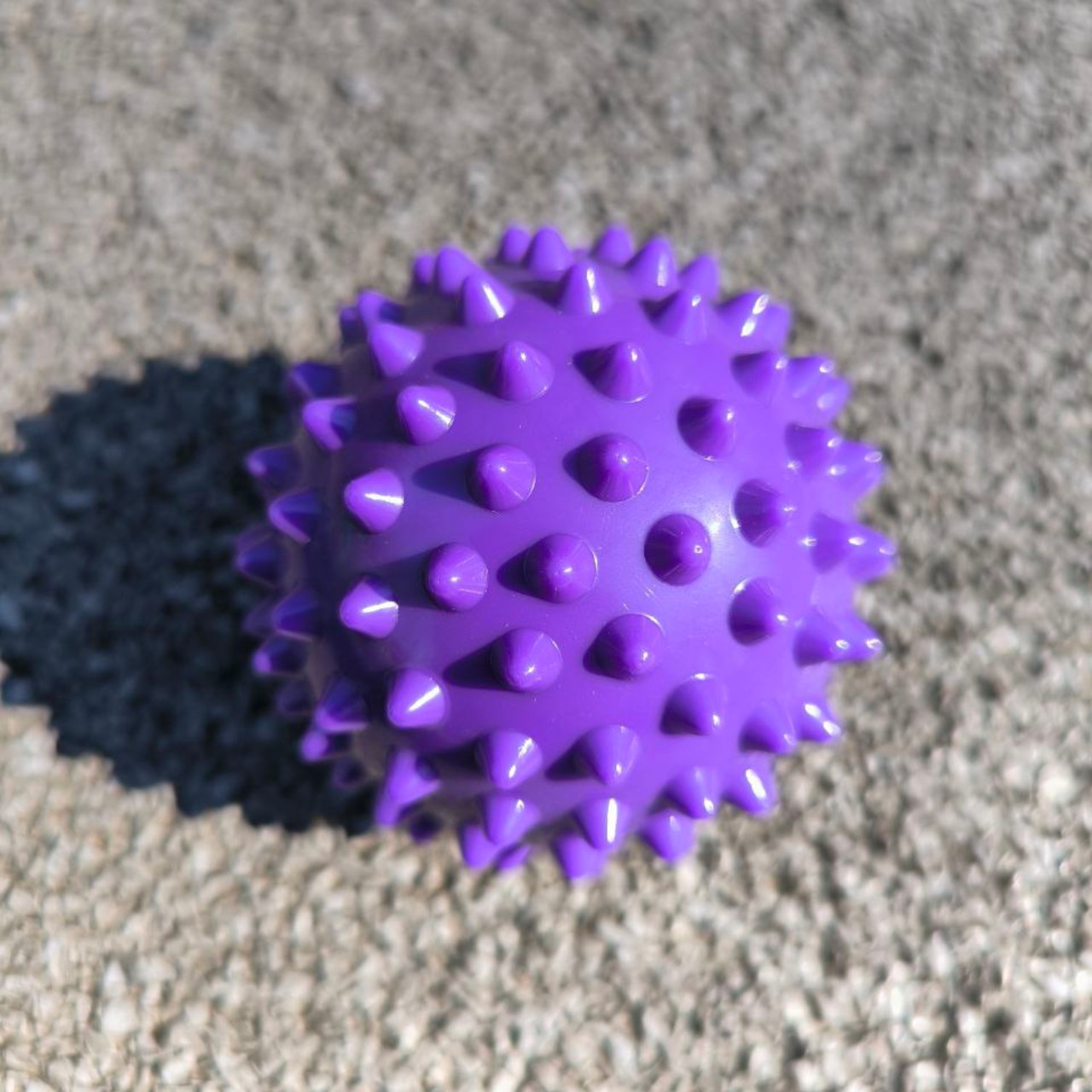 М’яч масажний виготовлений з ПВХ. Конструкцією м’яча не передбачений ніпель, тому відсутня можливість його накачати. М’яч жорсткий, що забезпечуєбільш інтенсивний масаж за рахунок додаткової стимуляції нервових закінчень. Він може бути корисним для масажу стоп та інших зон з великою кількістю рецепторів.