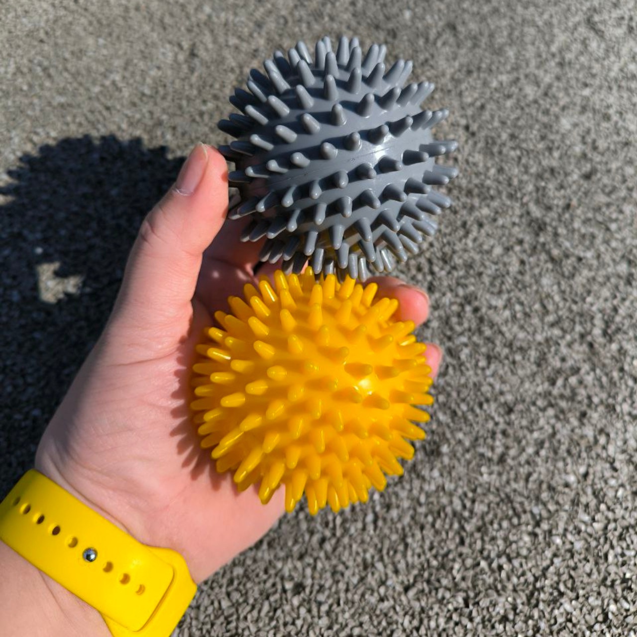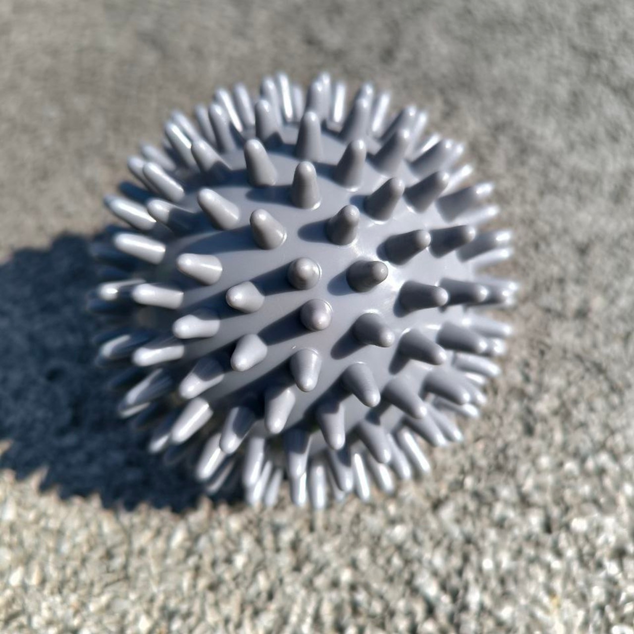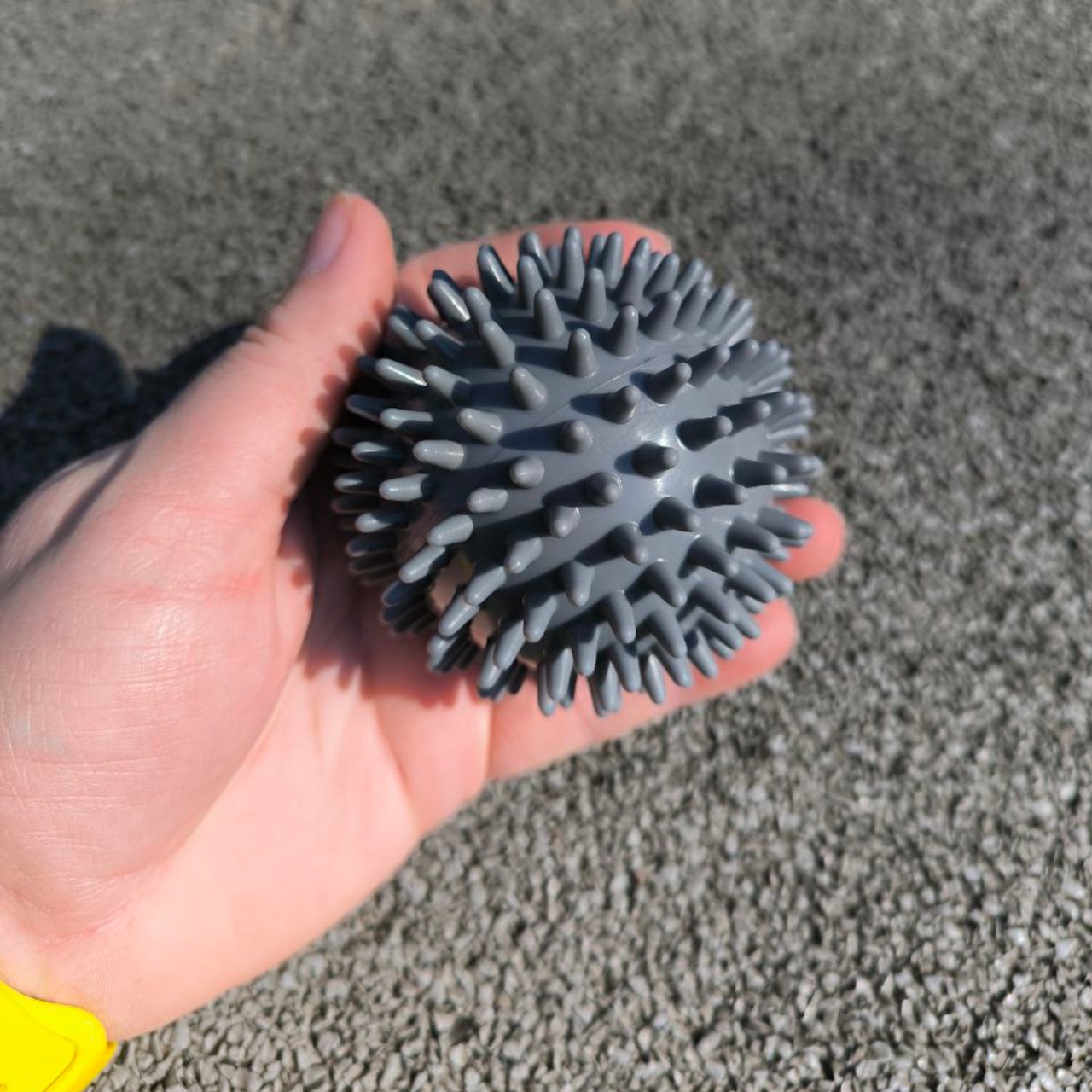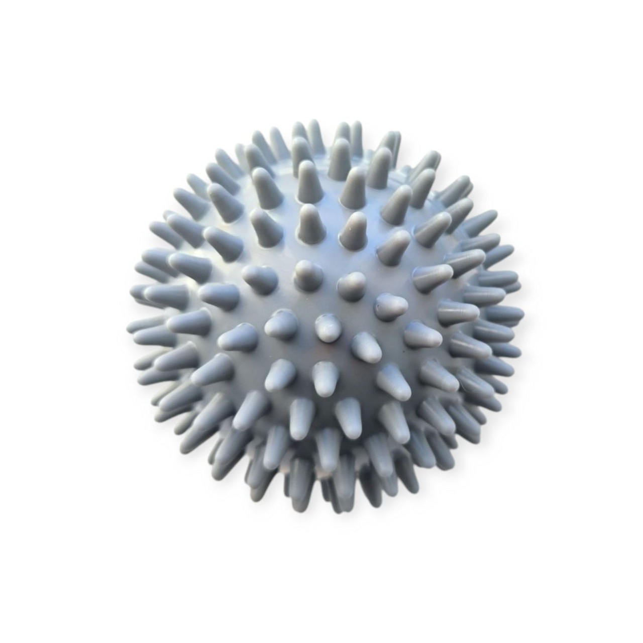 М’яч масажний виготовлений з ПВХ. Конструкцією м’яча не передбачений ніпель, тому відсутня можливість його накачати. За рахунок його помірній жорсткості можливо ефективно впливати на м’язи та фасції, не викликаючи надмірного дискомфорту. Даний м’ячик є чудовим інструментом для самомасажу та міофасціального розслаблення.
