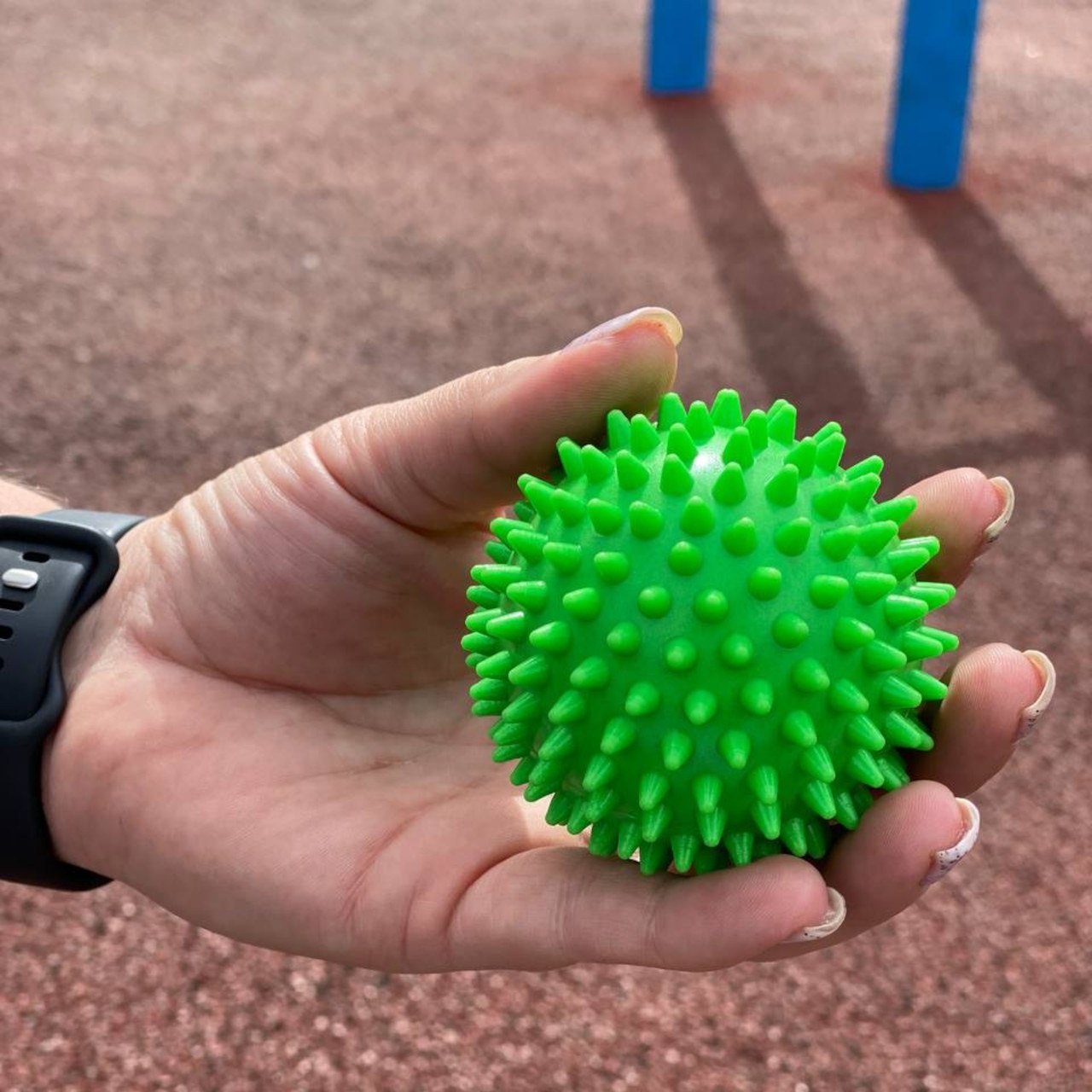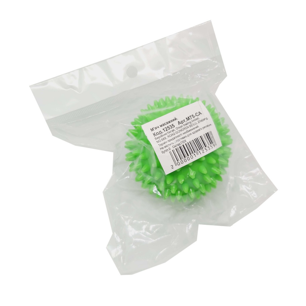 М’яч масажний «Голочки» виготовлений із гіпоалергенного матеріалу. Голочки, що знаходяться на поверхні м’ячика, ефективно опрацьовують біологічно активні точки на поверхні тіла. Використовується для профілактики плоскостопості, масажу. Перед застосуванням м’ячик необхідно промити мильною водою.