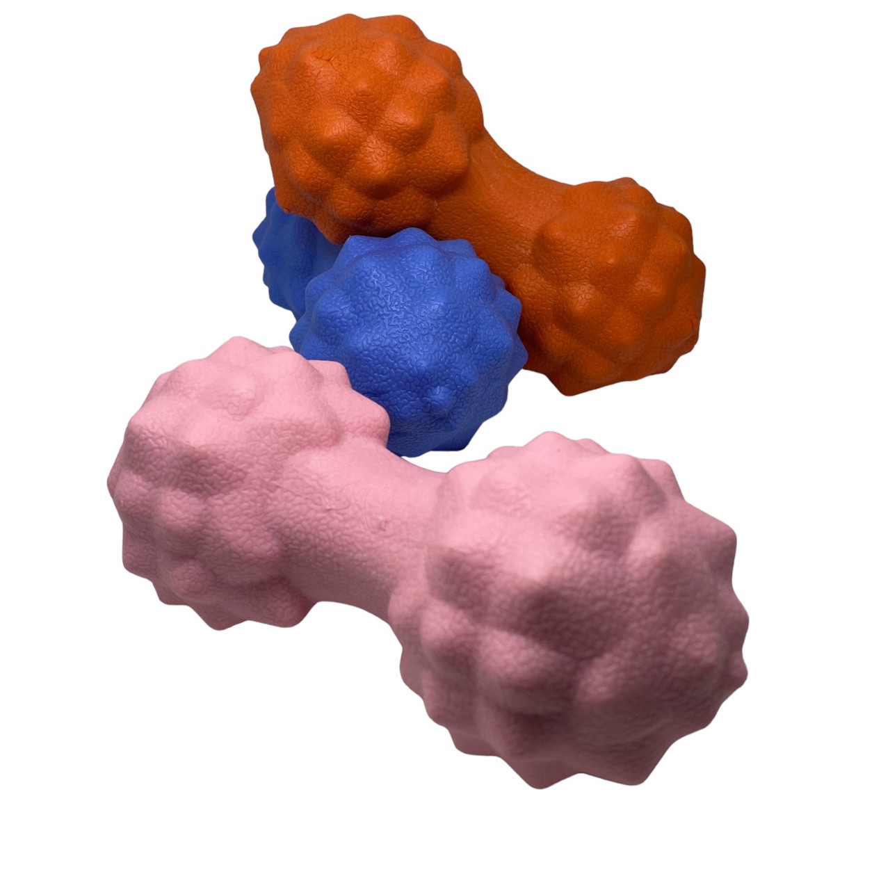М’яч масажний виготовлений з твердої гуми з ПВХ оболонкою. На відміну від м’ячів для МФР цей м’ячик продавлюється із зусиллям. Застосовується для відновлення м’язів після активних тренувань та великих навантажень.
