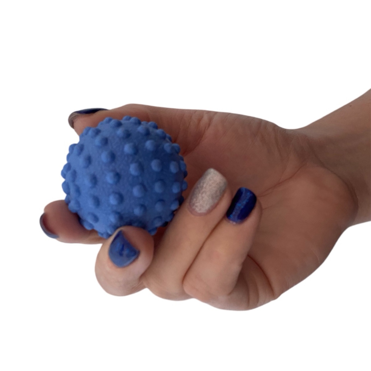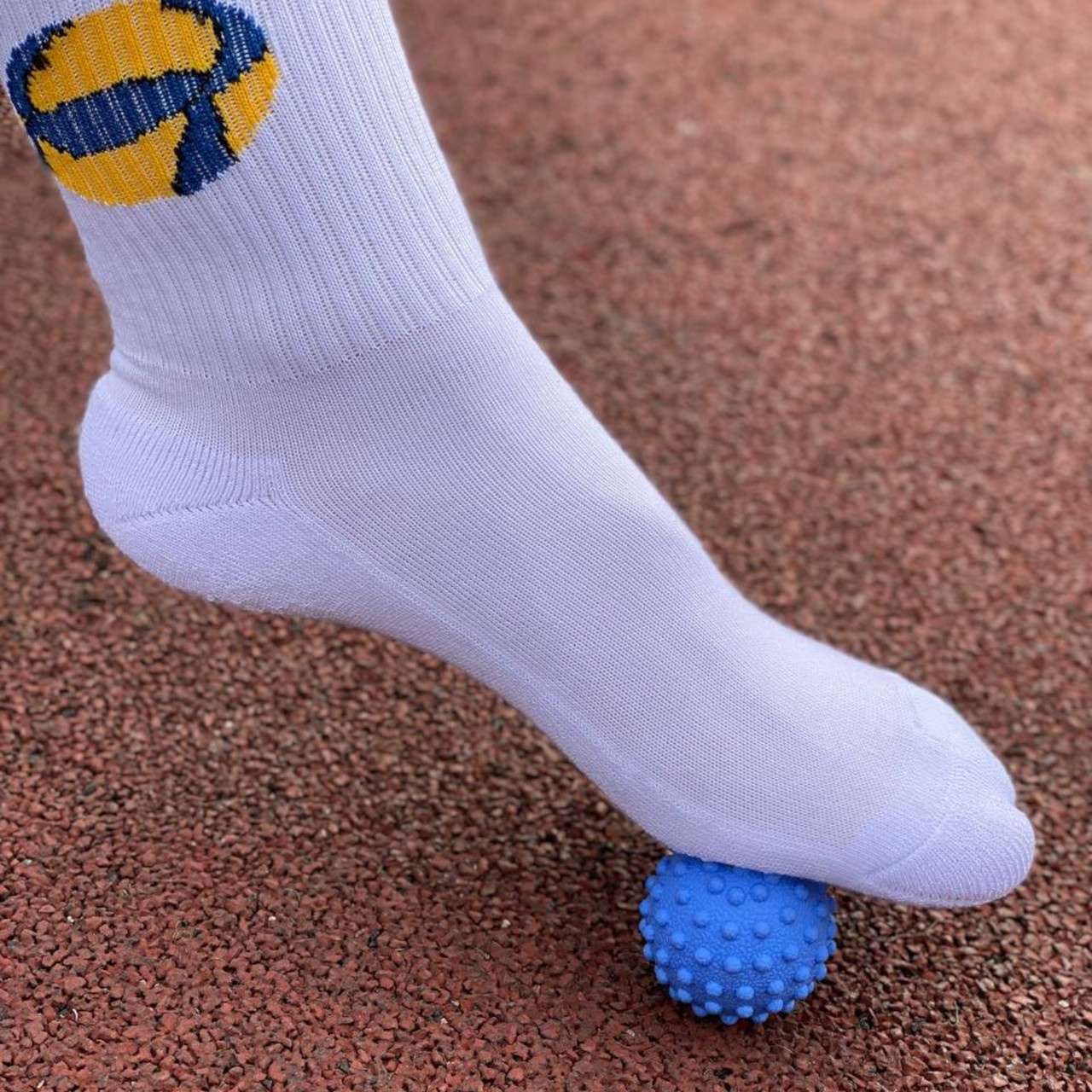 М’яч масажний виготовлений з твердої гуми з ПВХ оболонкою. На відміну від м’ячів для МФР цей м’ячик продавлюється із зусиллям. Застосовується для відновлення м’язів після активних тренувань та великих навантажень.