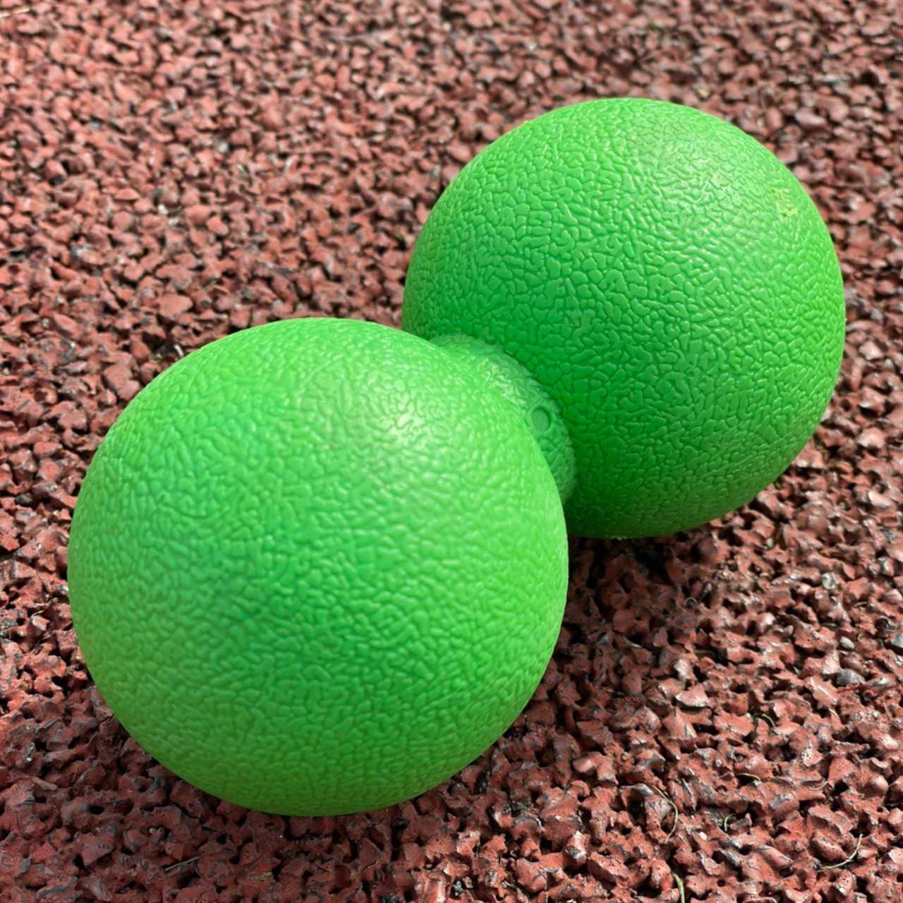 М’яч для МФР подвійний ефективно відновлює м’язи після активних тренувань та великих навантажень. Здвоєний м’яч відмінно підходять для міофасціального релізу м’язів-розгиначів спини, м’язів спини плечового пояса, литкових м’язів, задньої поверхні стегна і сідниць, також він детальніше опрацьовує тригерні точки. Завдяки високій жорсткості м’яча проробляються навіть дуже спазмовані м’язи.