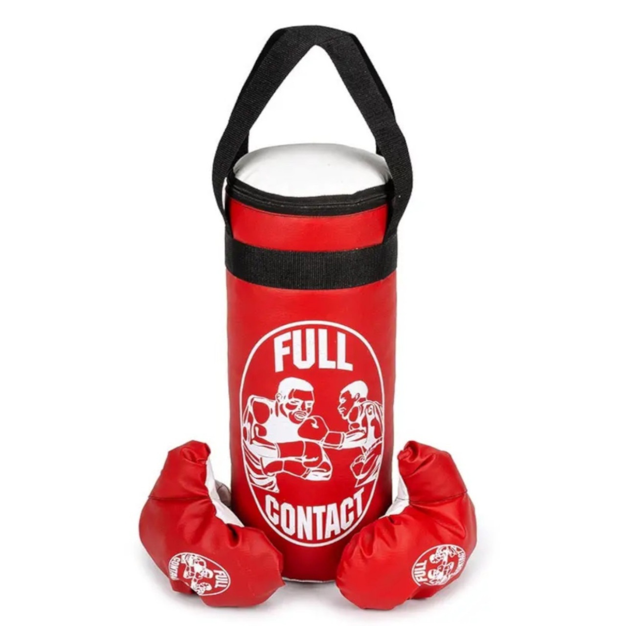 Дитячий набір для боксу включає мішок та пару рукавичок. Мішок виготовлений зі шкірозамінника, наповнений тирсою, рукавички вагою 4 унції виготовлені зі шкірозамінника та текстильних обрізків, спеціально розроблені для дитячих рук, забезпечуючи комфорт та захист. Заняття боксом чудовий спосіб для дітей розвинути координацію, силу, витривалість та виплеснути енергію.